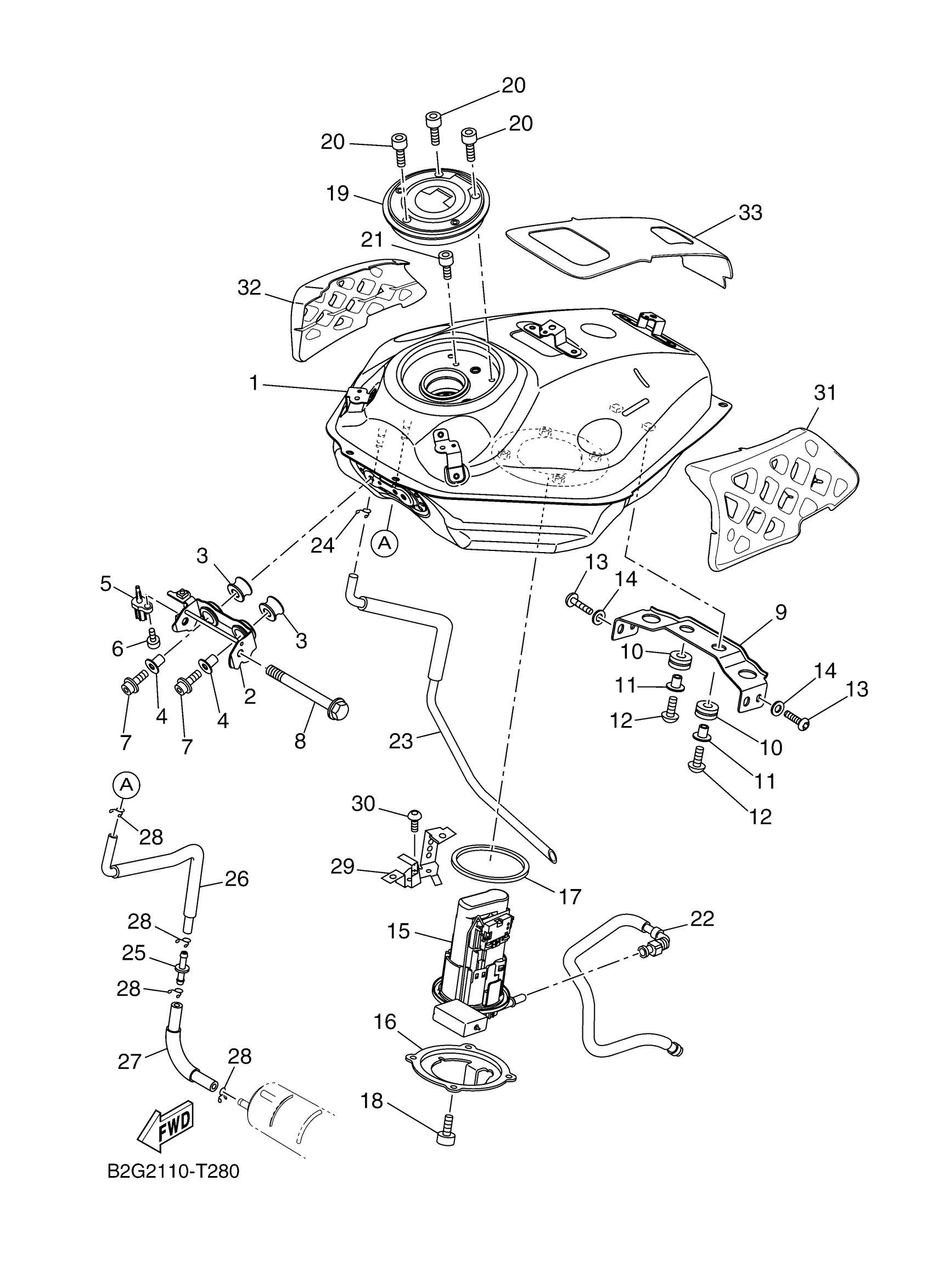Yamaha XSR700LW (XSR700) B2GD 2020 FUEL TANK 2 Diagram
