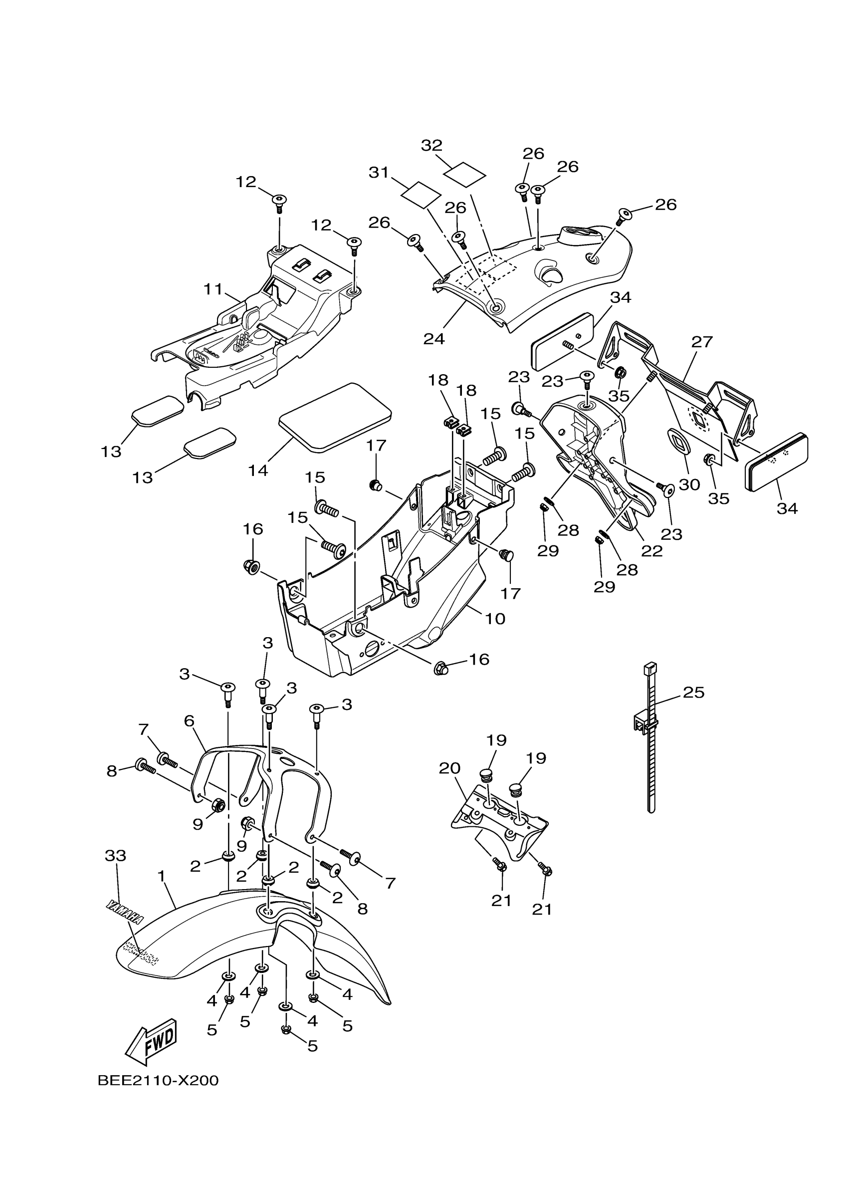 Yamaha XSR700PB (XSR700) BMC5 2023 FENDER Diagram
