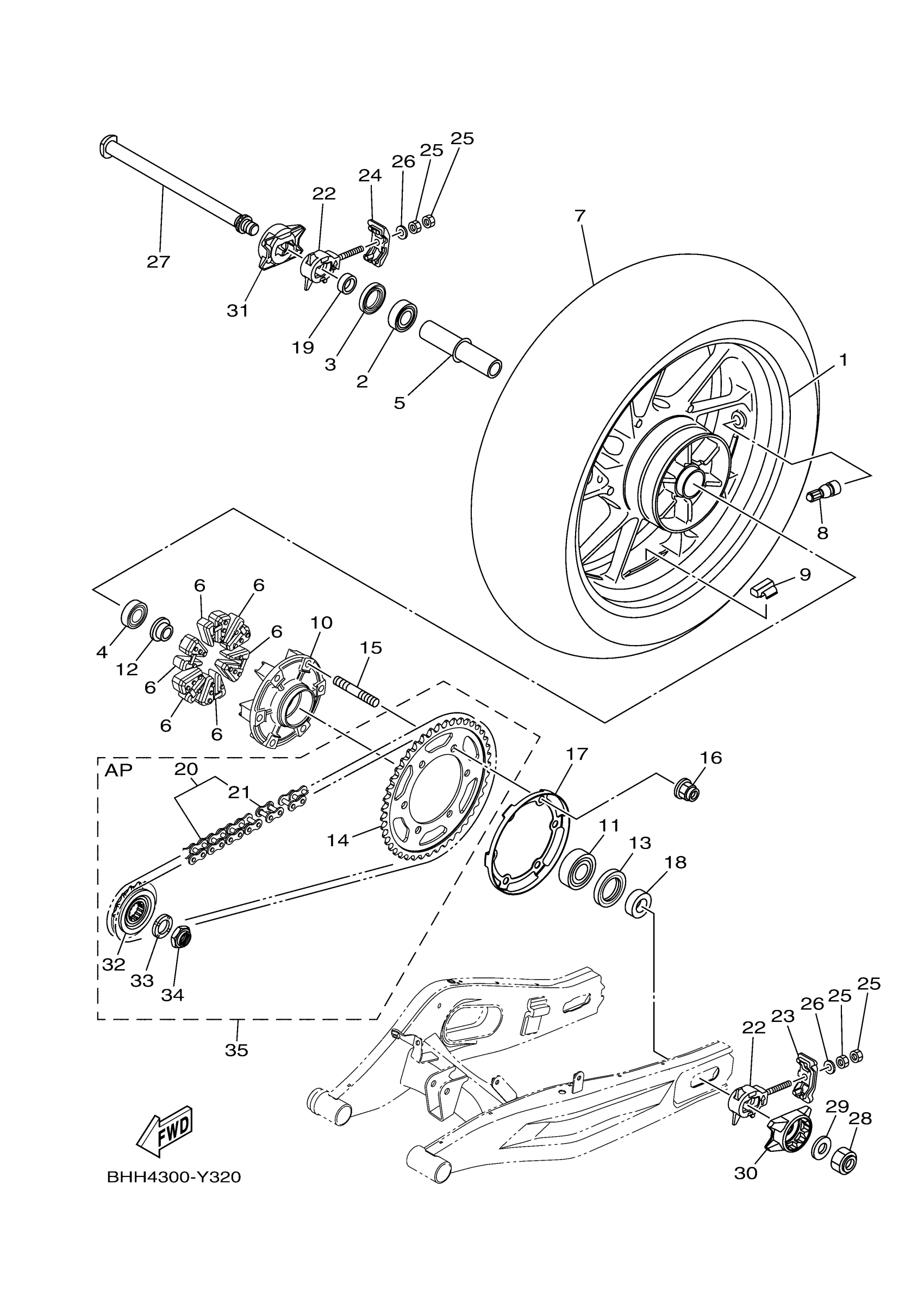 Yamaha XSR700SCB (XSR700 CA) BMCM 2025 REAR WHEEL Diagram