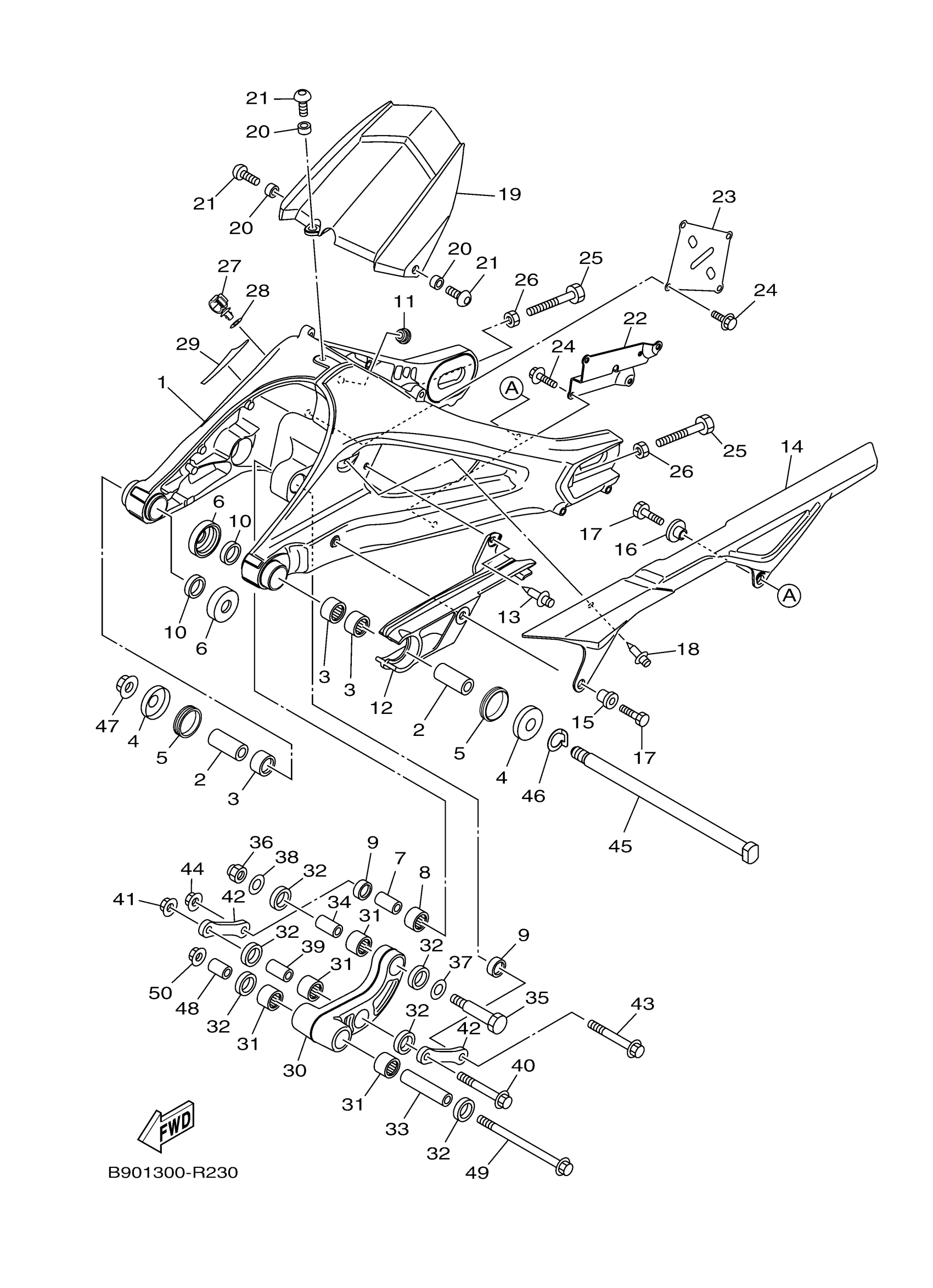 Yamaha XSR900GY (XSR900 60TH ANNIVERSARY) B90D 2016 REAR ARM Diagram