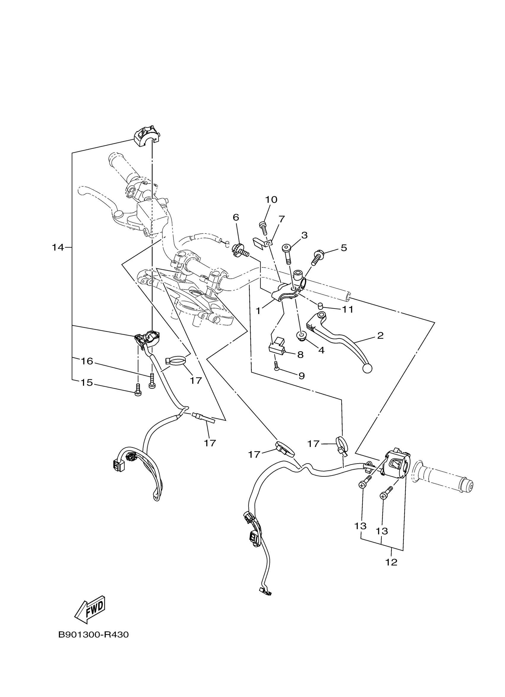 Yamaha XSR900JR (XSR900) B90T 2018 HANDLE SWITCH LEVER Diagram