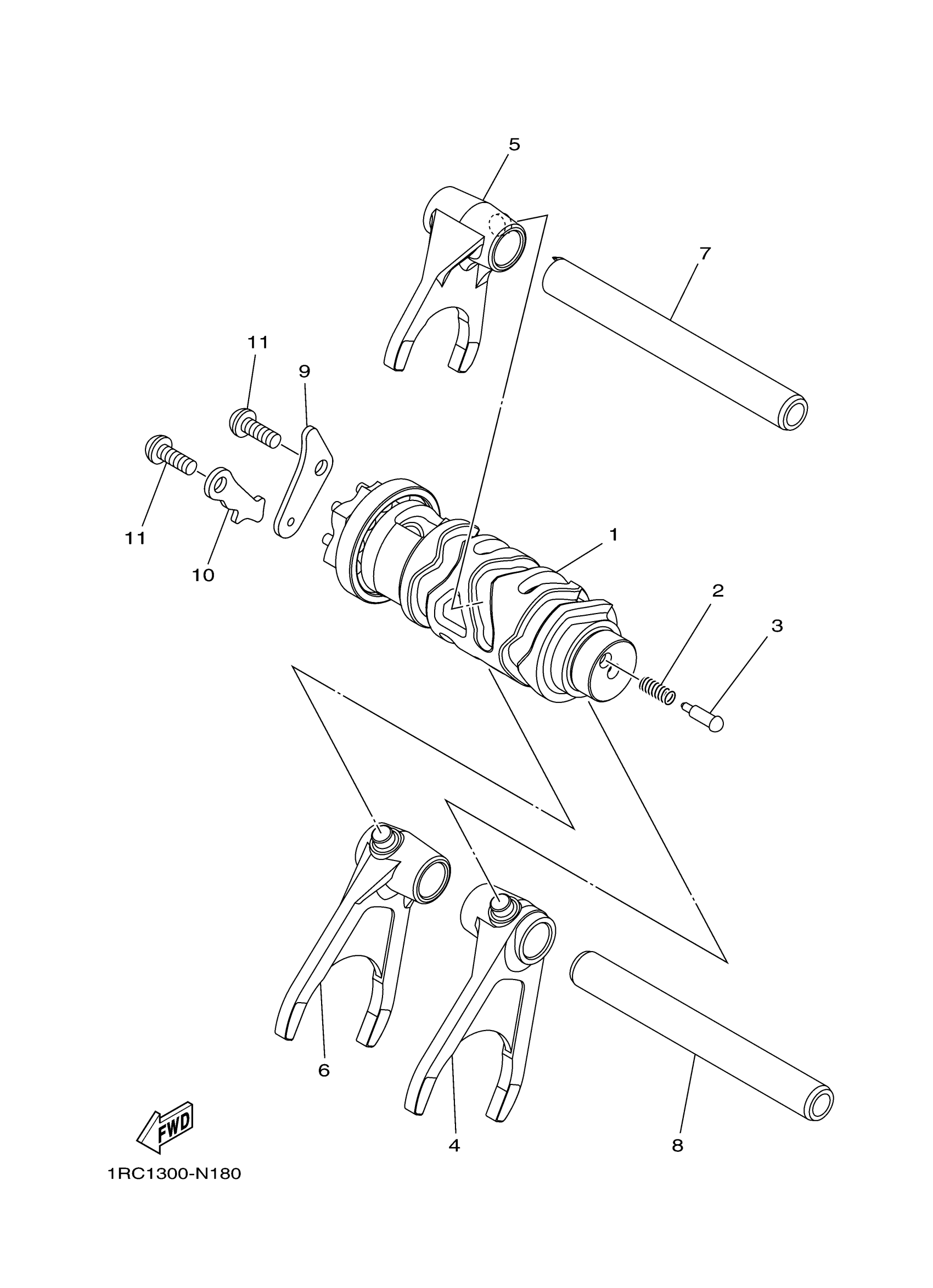 Yamaha XSR900LW (XSR900) BAEA 2020 SHIFT CAM & FORK Diagram