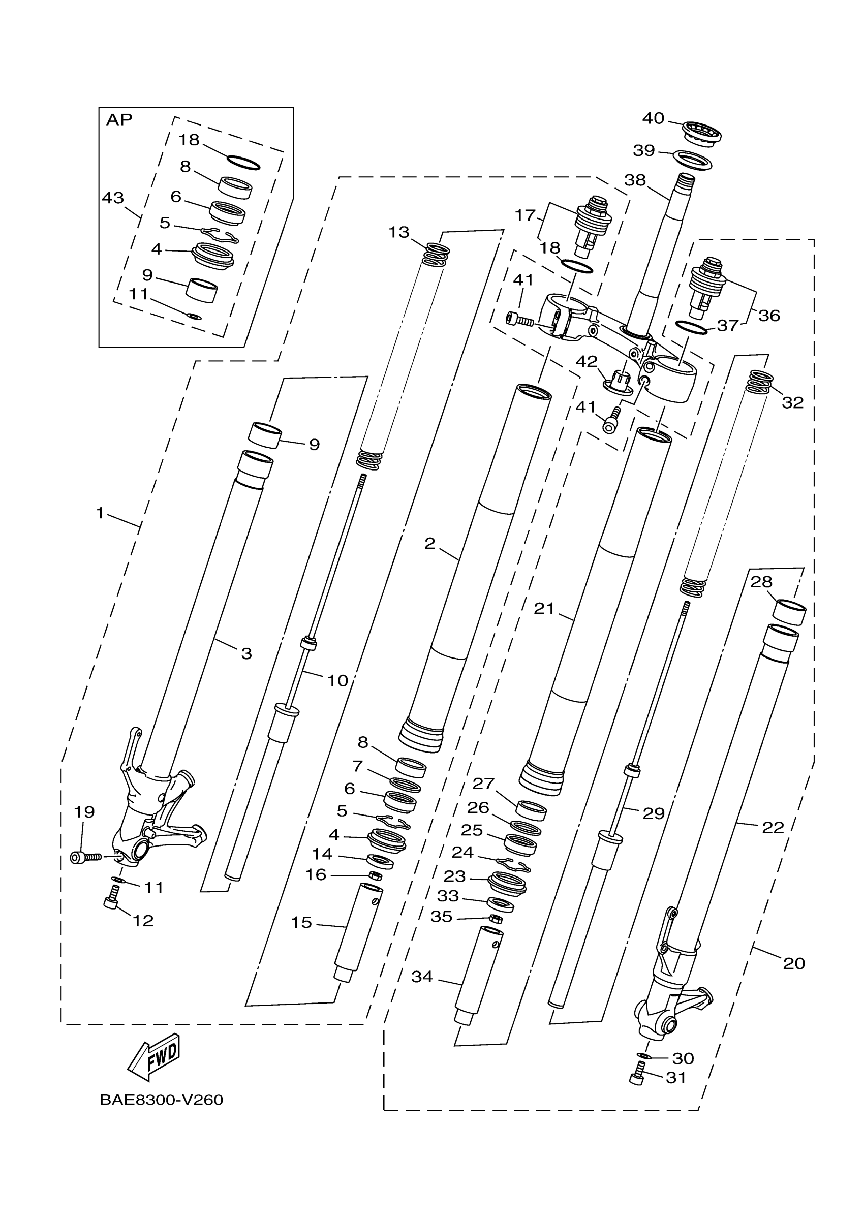 Yamaha XSR900MW (XSR900) BAEG 2021 FRONT FORK Diagram