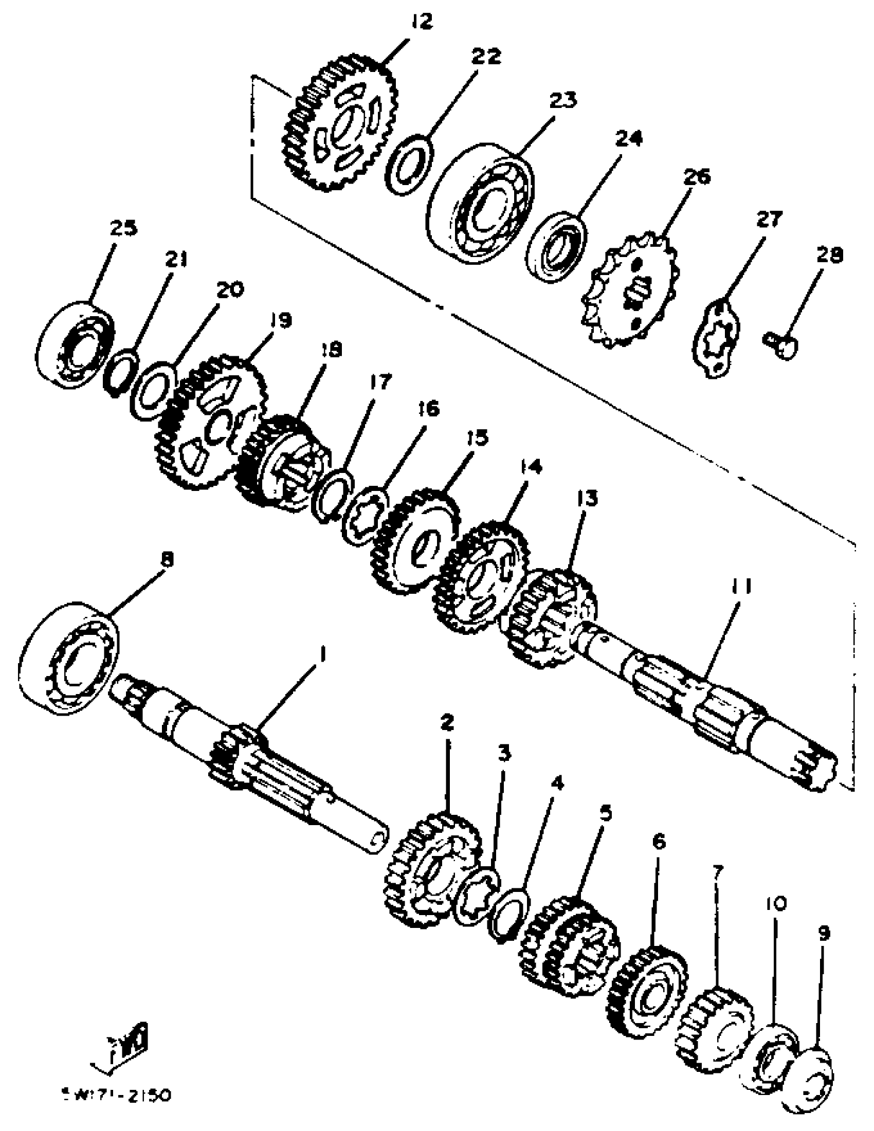 Yamaha XT125J (XT125) 1982 TRANSMISSIN Diagram