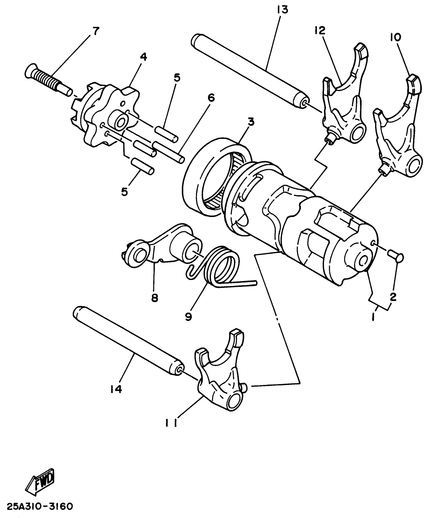 Yamaha XT225HC (SEROW CA) 1996 SHIFT CAM SHIFT FORK Diagram