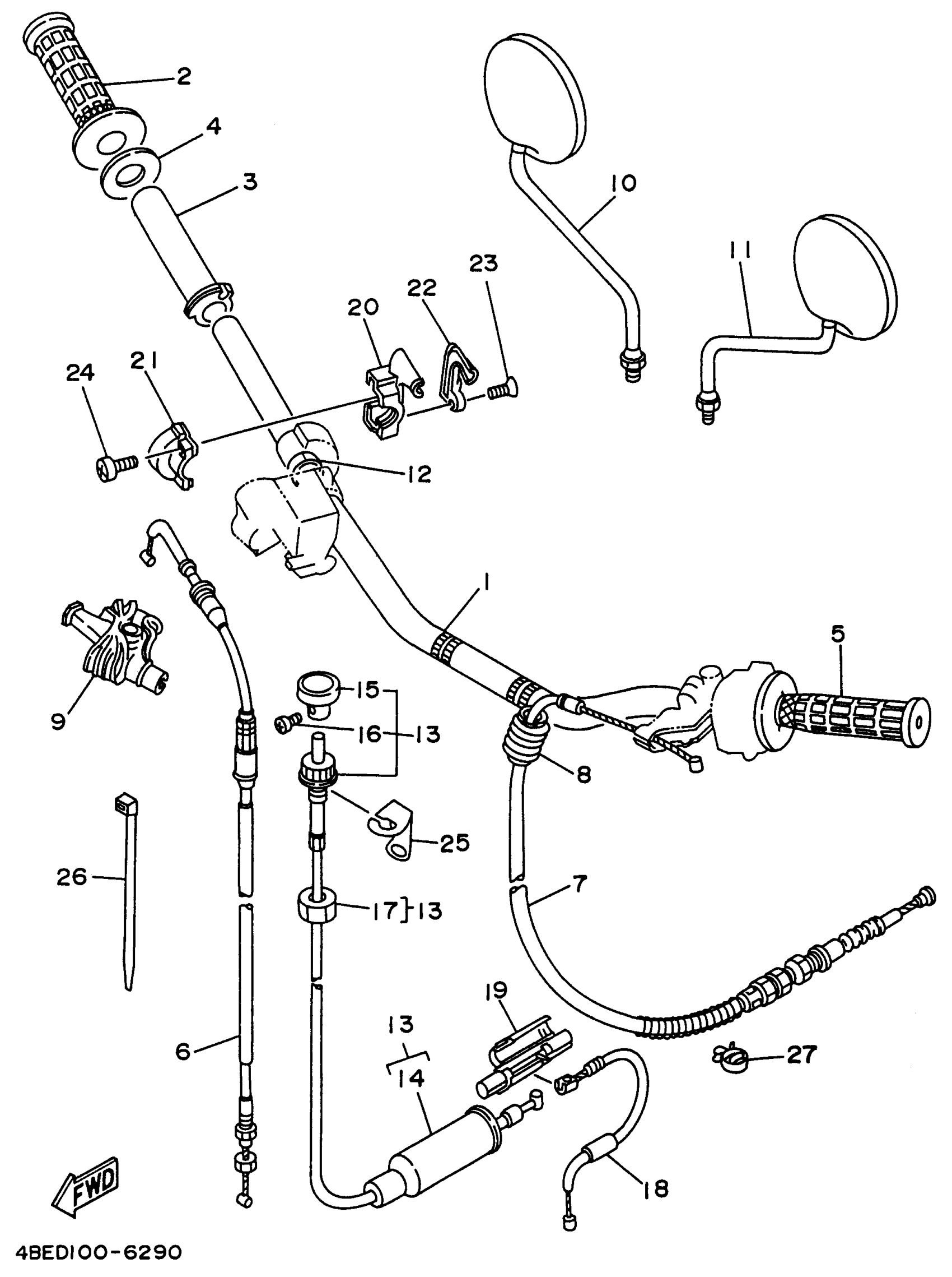 Yamaha XT225HC (SEROW CA) 1996 STEERING HANDLE CABLE Diagram