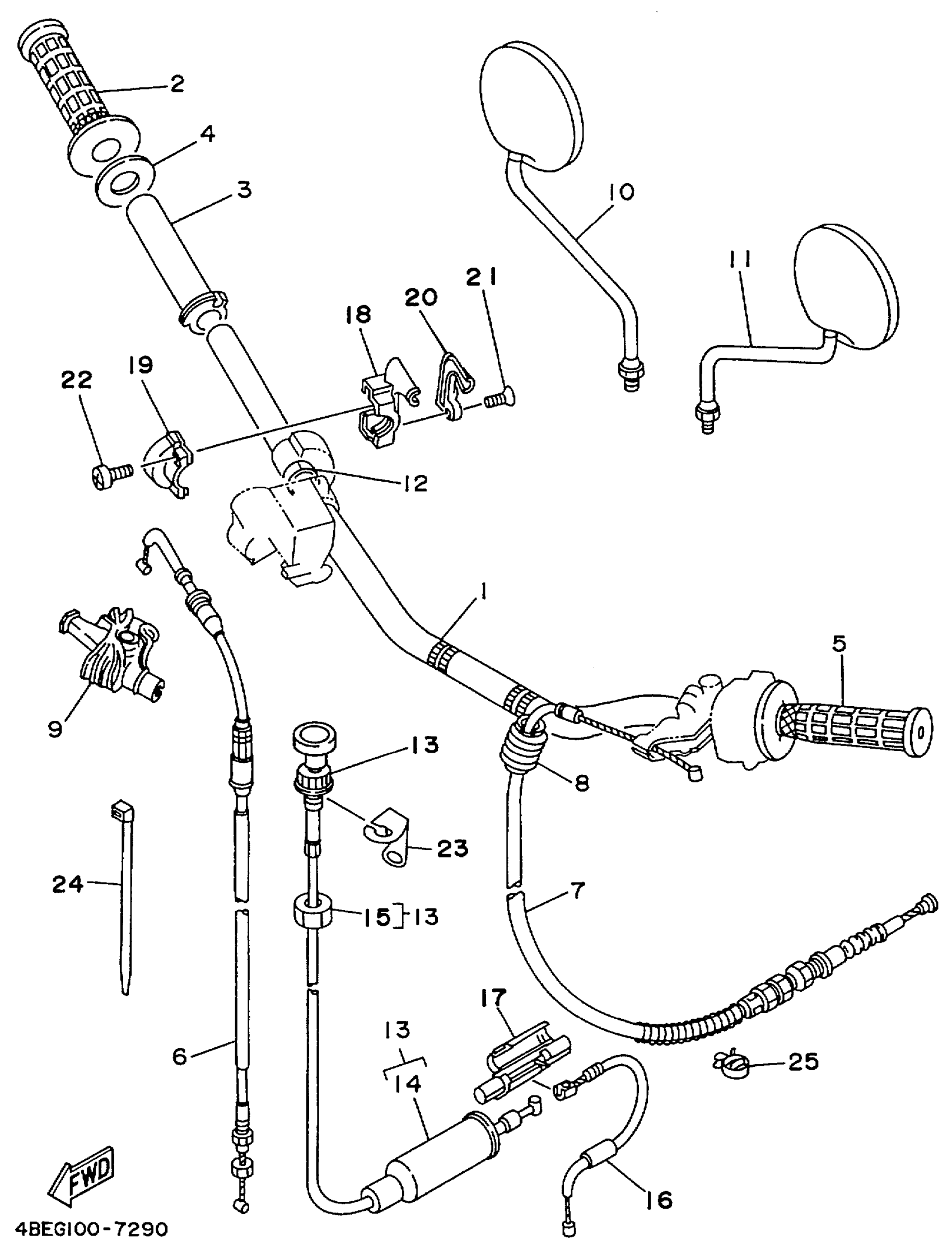Yamaha XT225LC (SEROW CA) 4BENC 1999 STEERING HANDLE CABLE Diagram