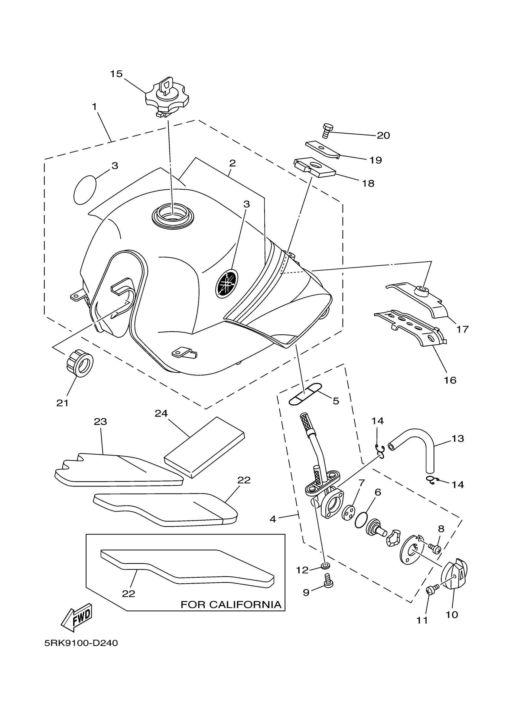 Yamaha XT225TC (XT225 CA) 5RKA 2005 FUEL TANK Diagram