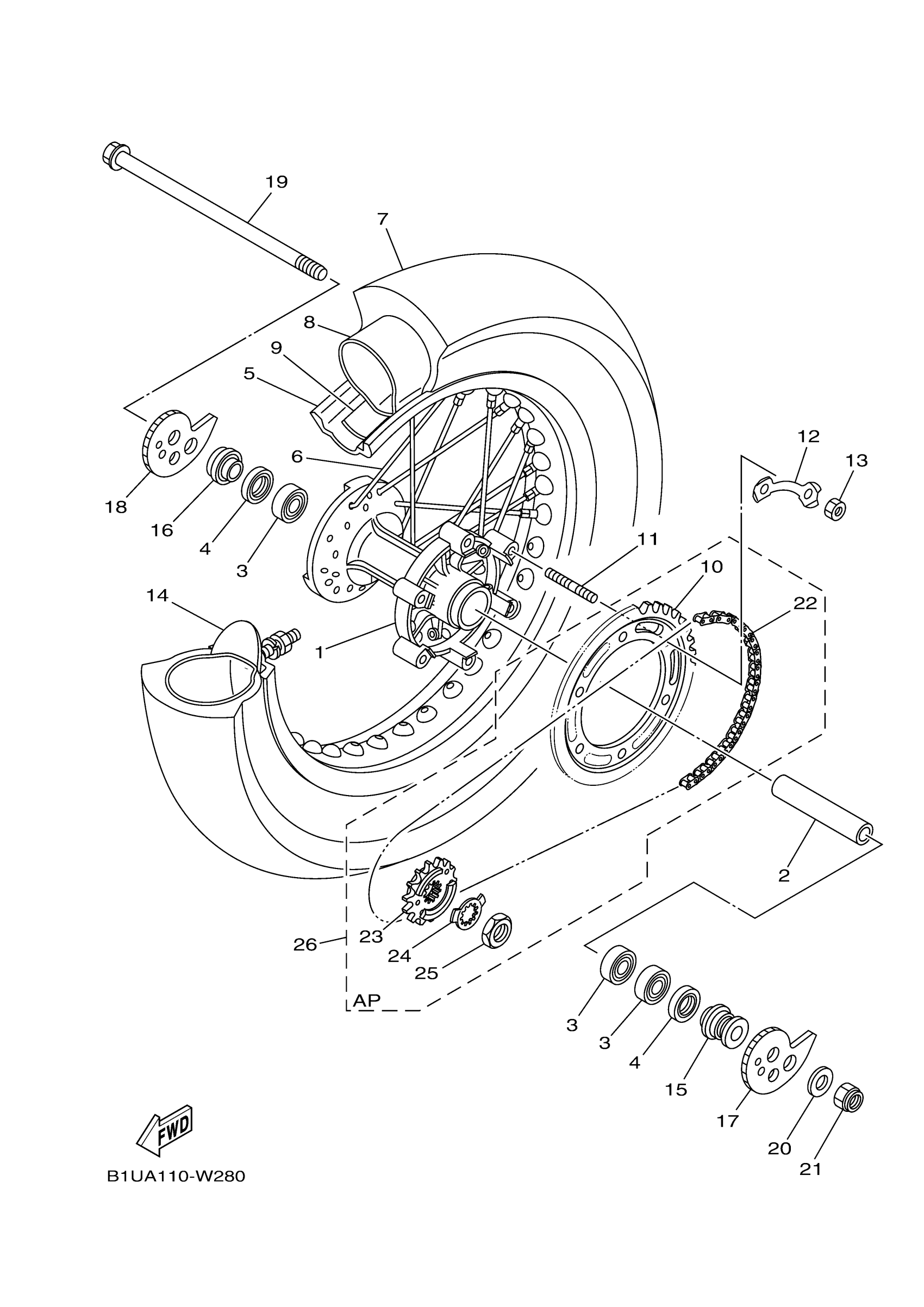 Yamaha XT250SC (XT250 CA) B1UR 2025 REAR WHEEL Diagram