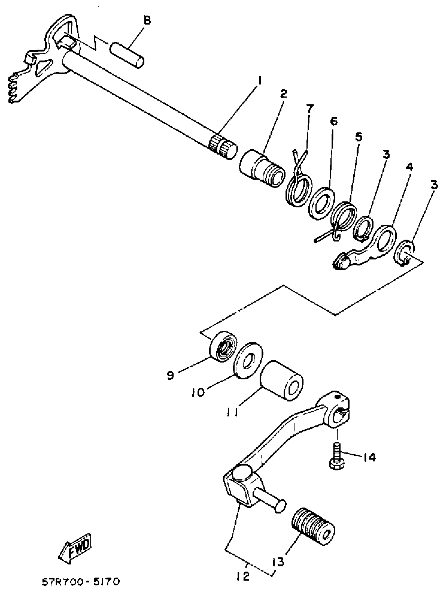 Yamaha XT350EC (XT350 CA) 1993 SHIFT SHAFT Diagram