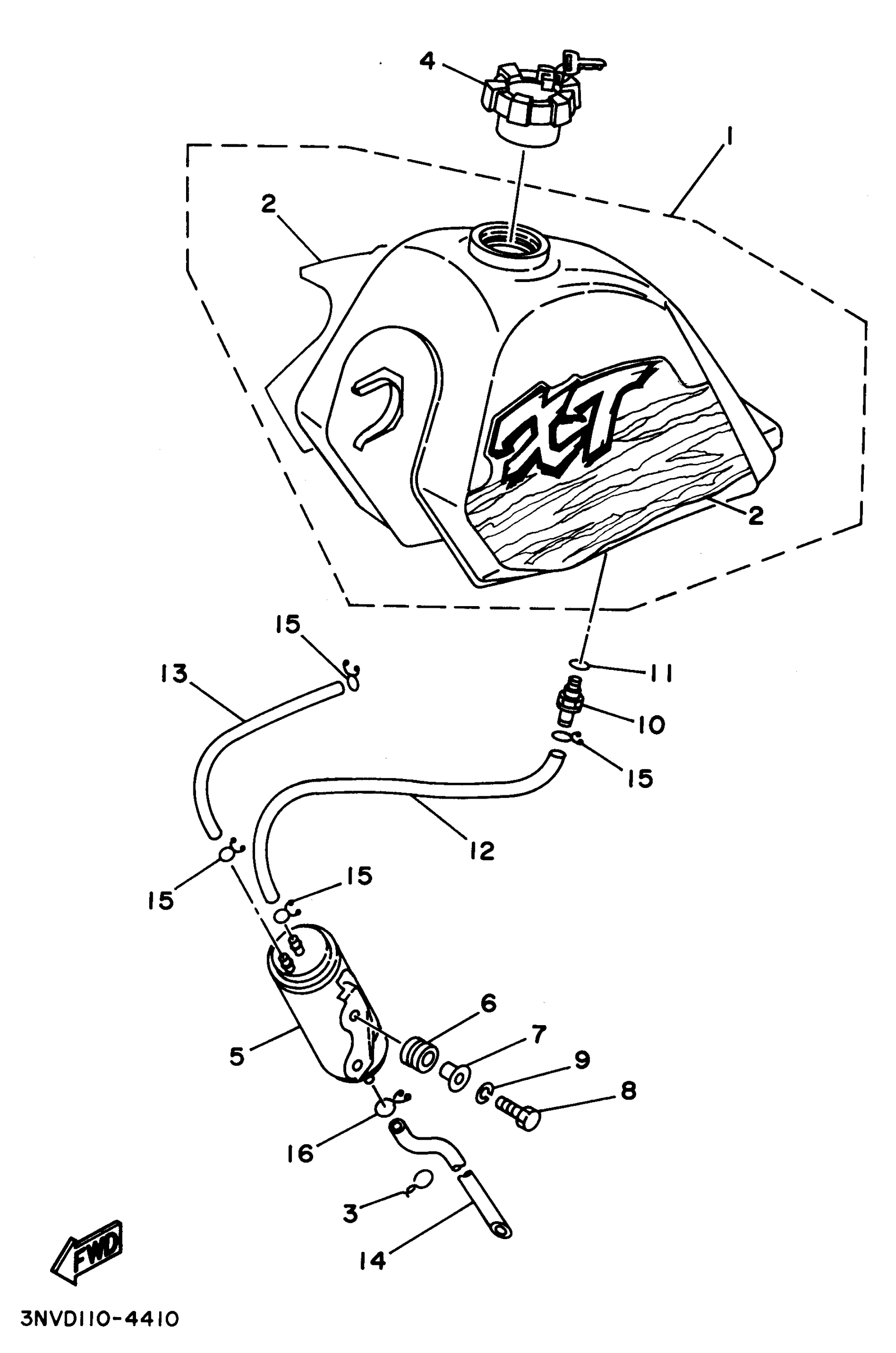 Yamaha XT350GC (XT350 CA) 1995 FUEL TANK (CALIFORNIA ONLY) Diagram