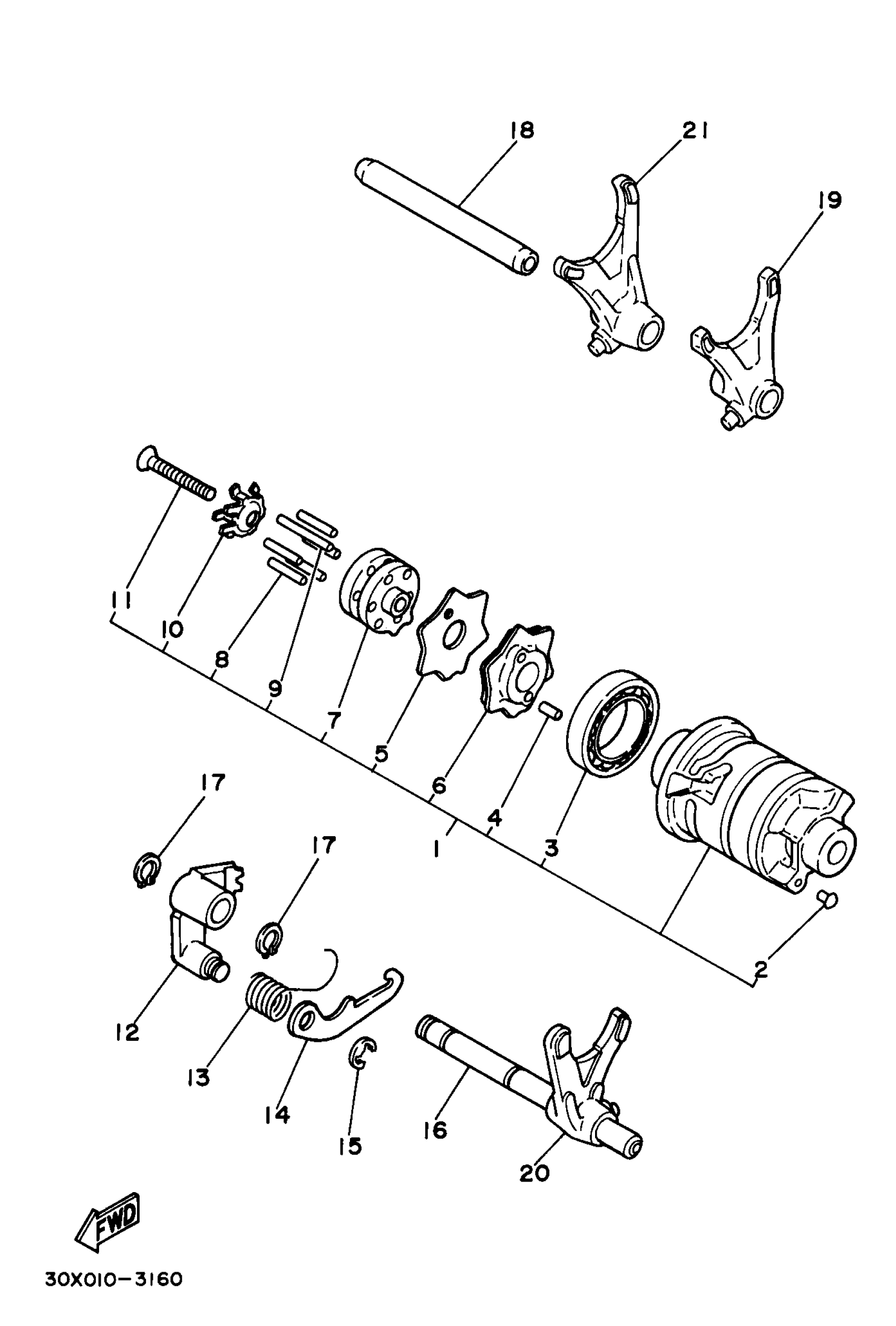 Yamaha XT350JC (XT350 CA) 1997 SHIFT CAM SHIFT FORK Diagram