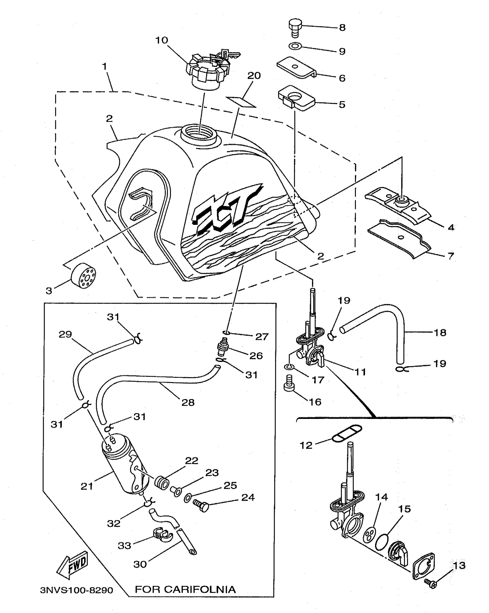 Yamaha XT350KC (XT350 CA) 1998 FUEL TANK Diagram