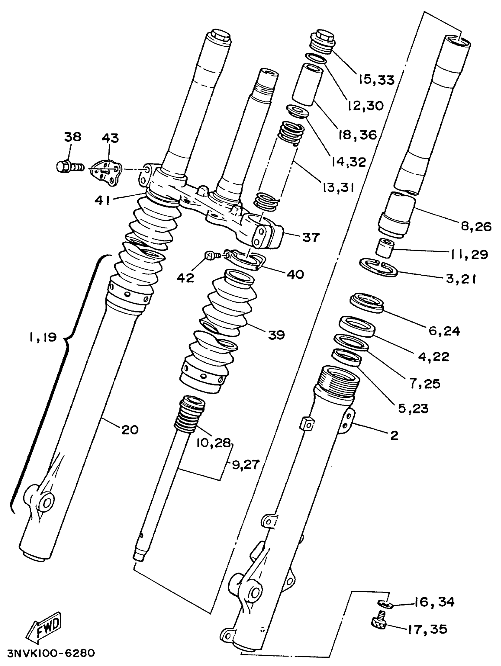Yamaha XT350LC (XT350 CA) 3NVVC 1999 FRONT FORK Diagram