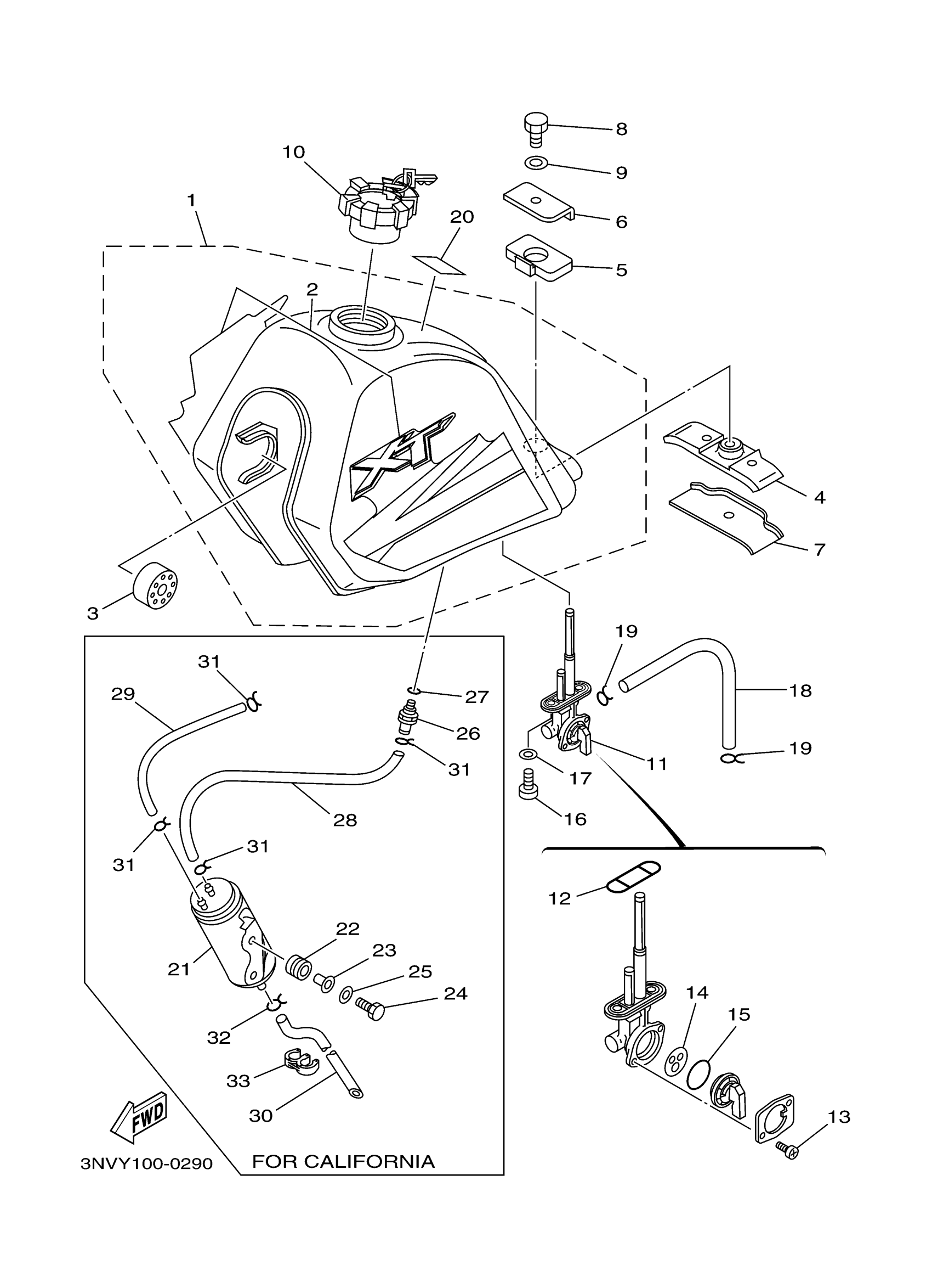 Yamaha XT350MC (XT350 CA) 5LJ1 2000 FUEL TANK Diagram