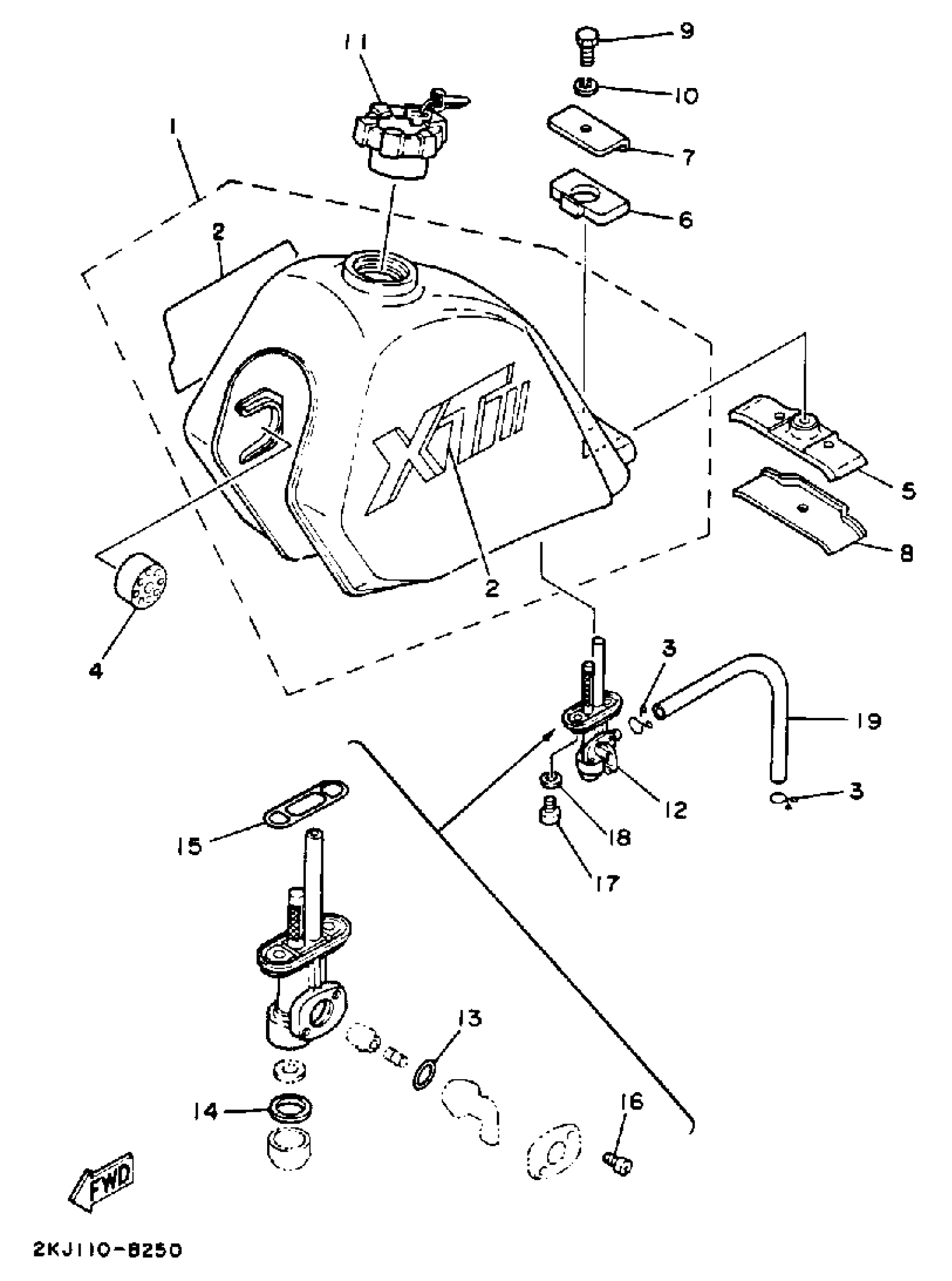 Yamaha XT350WC (XT350 CA) 1989 FUEL TANK (NON-CALIFORNIA MODEL) Diagram