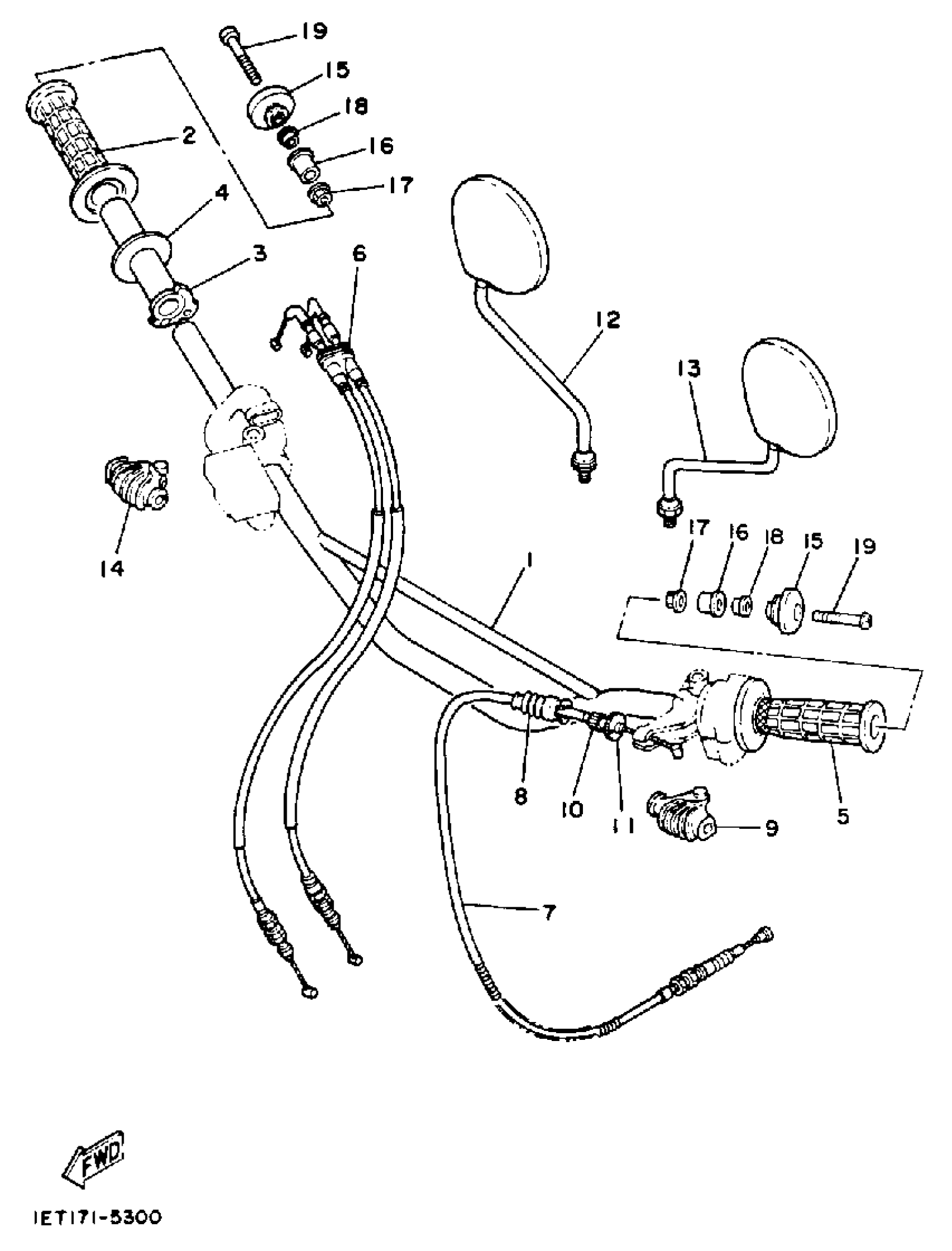 Yamaha XT350WC (XT350 CA) 1989 HANDLEBAR - CABLE Diagram