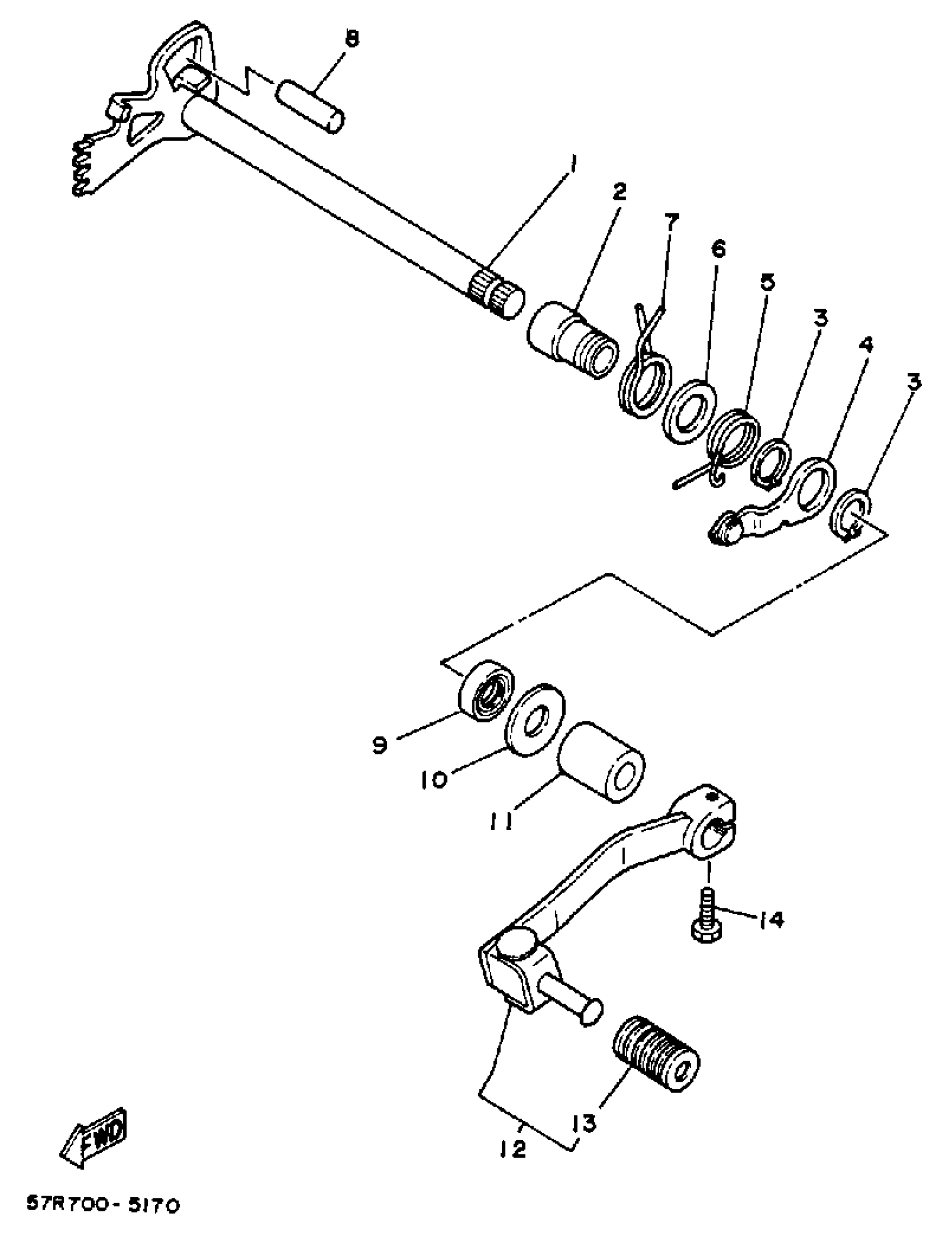 Yamaha XT350WC (XT350 CA) 1989 SHIFT SHAFT Diagram