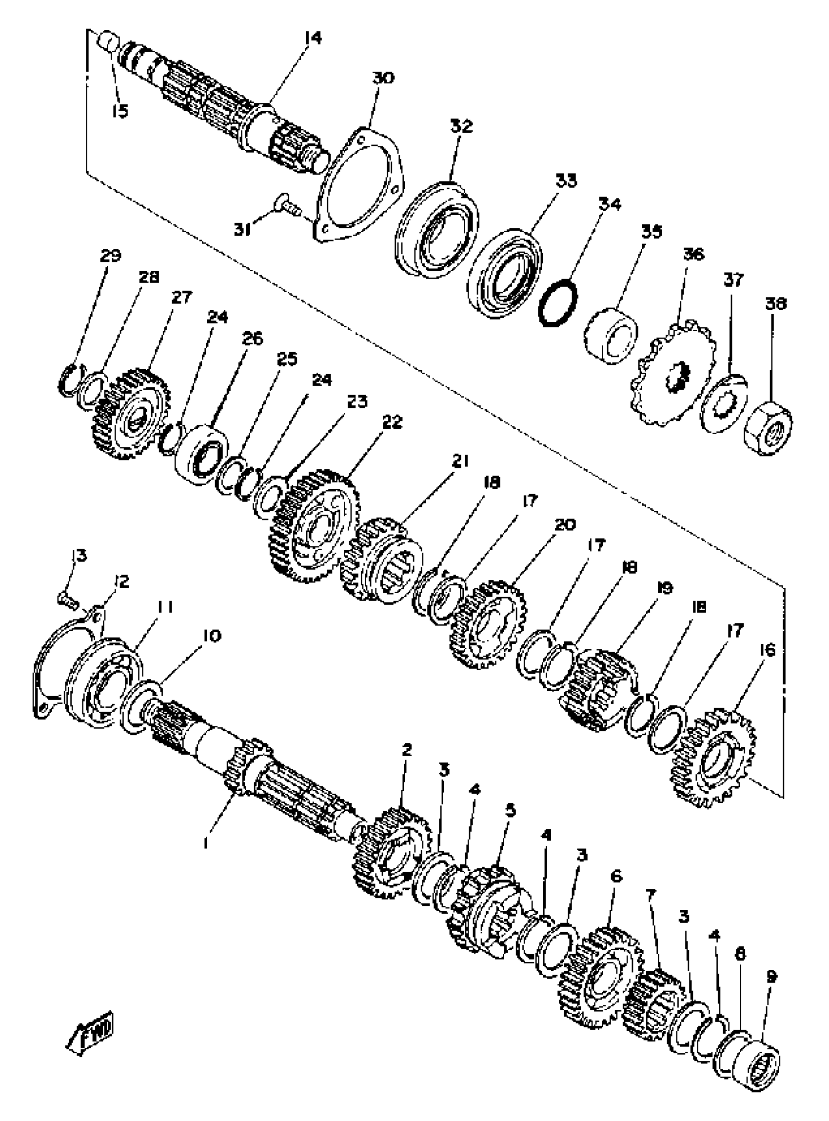 Yamaha XT500C (XT500) 1976 KICK - STARTER Diagram