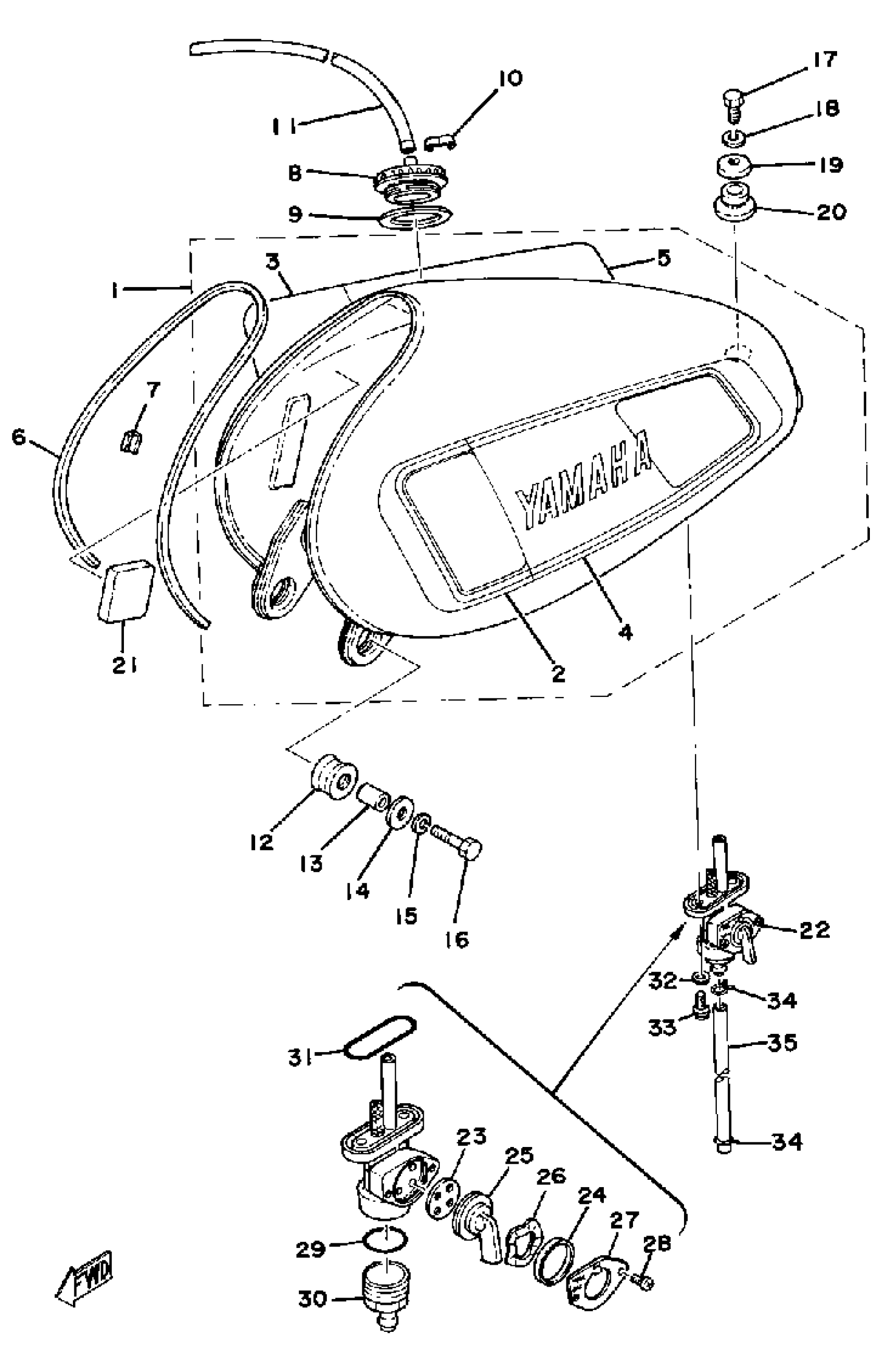 Yamaha XT500D (XT500) 1977 FUEL TANK Diagram