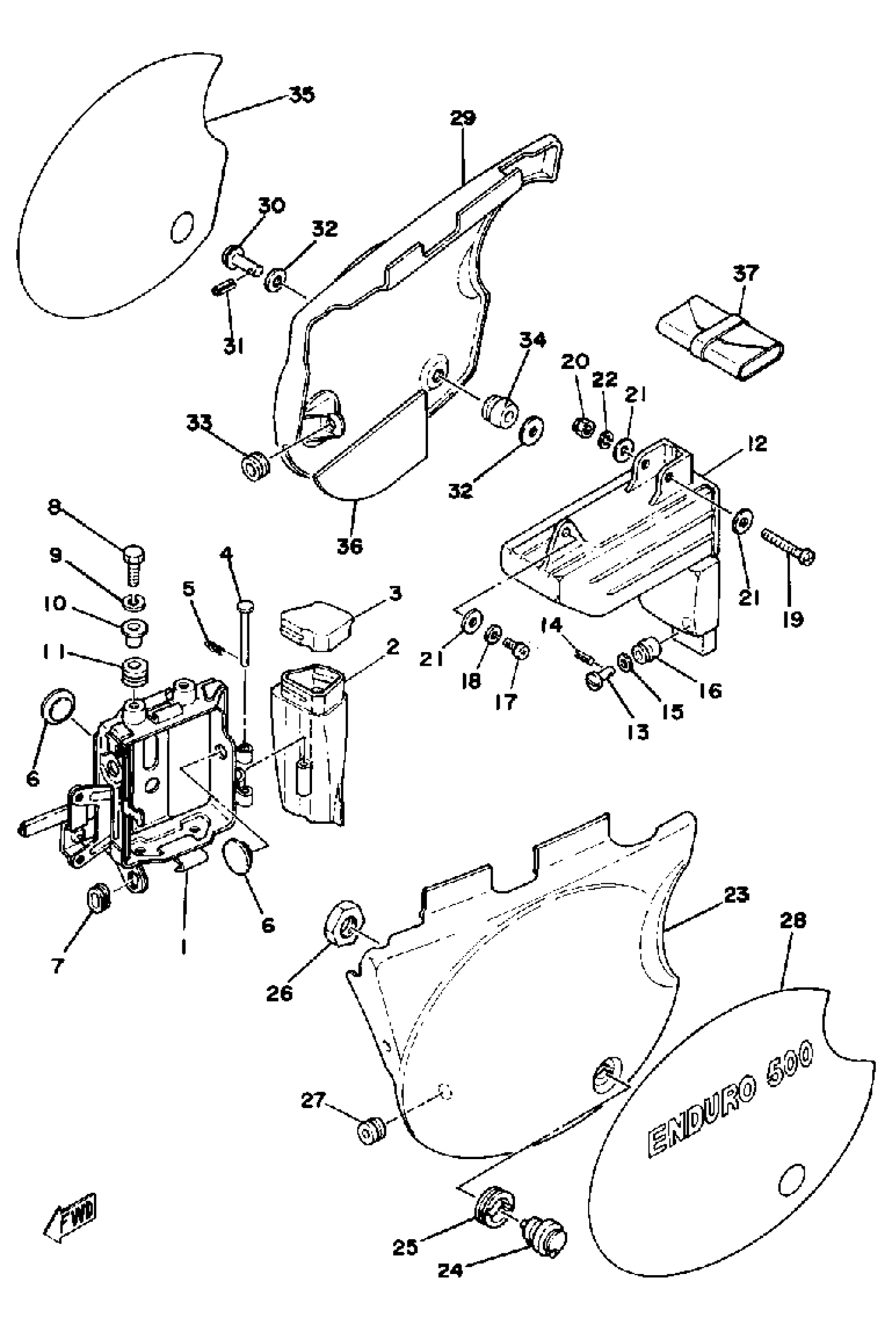 Yamaha XT500F (XT500) 1979 SIDE COVER - BATTERY BOX Diagram