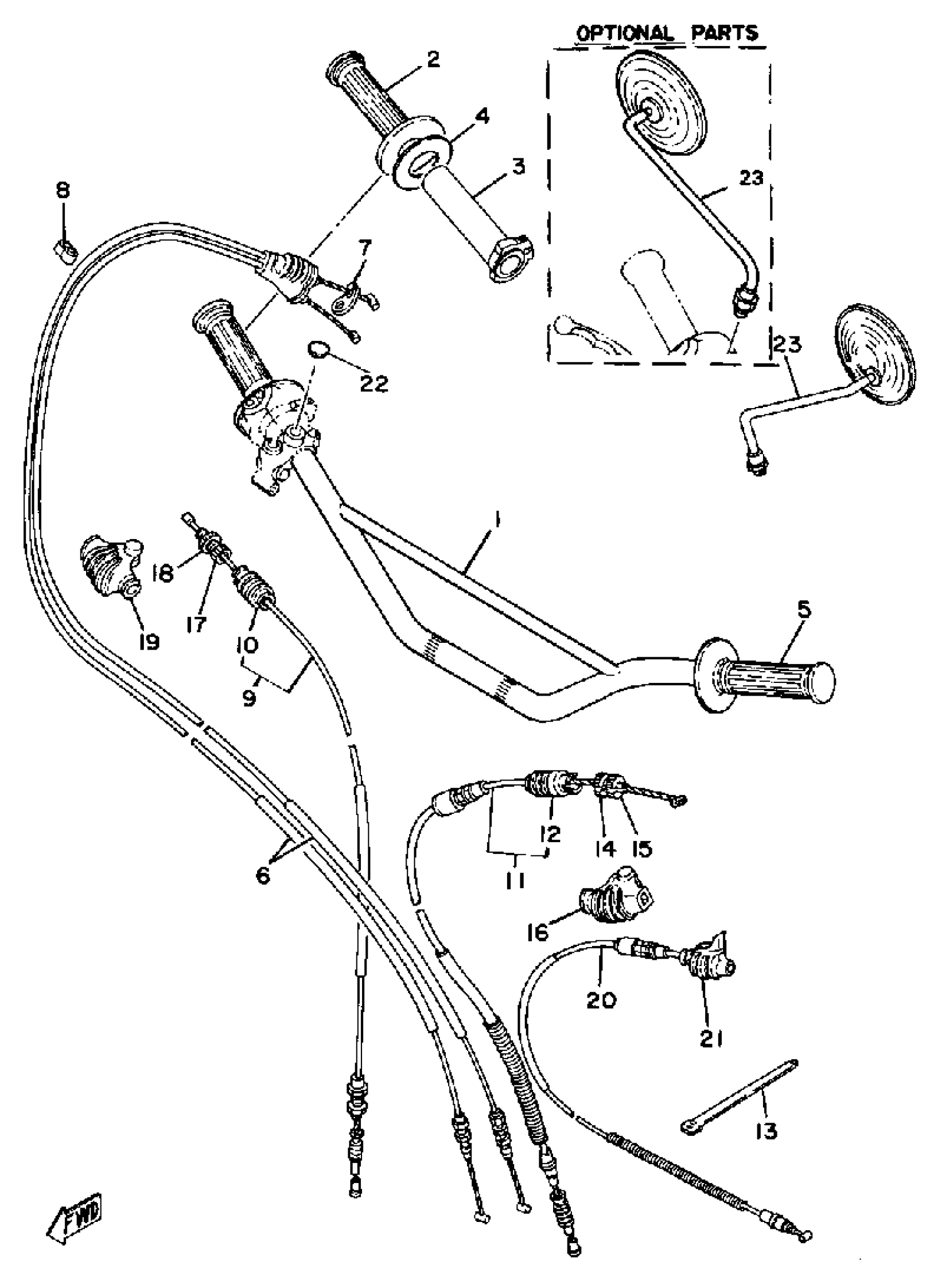 Yamaha XT500G (XT500) 1980 STEERING HANDLE - CABLE Diagram
