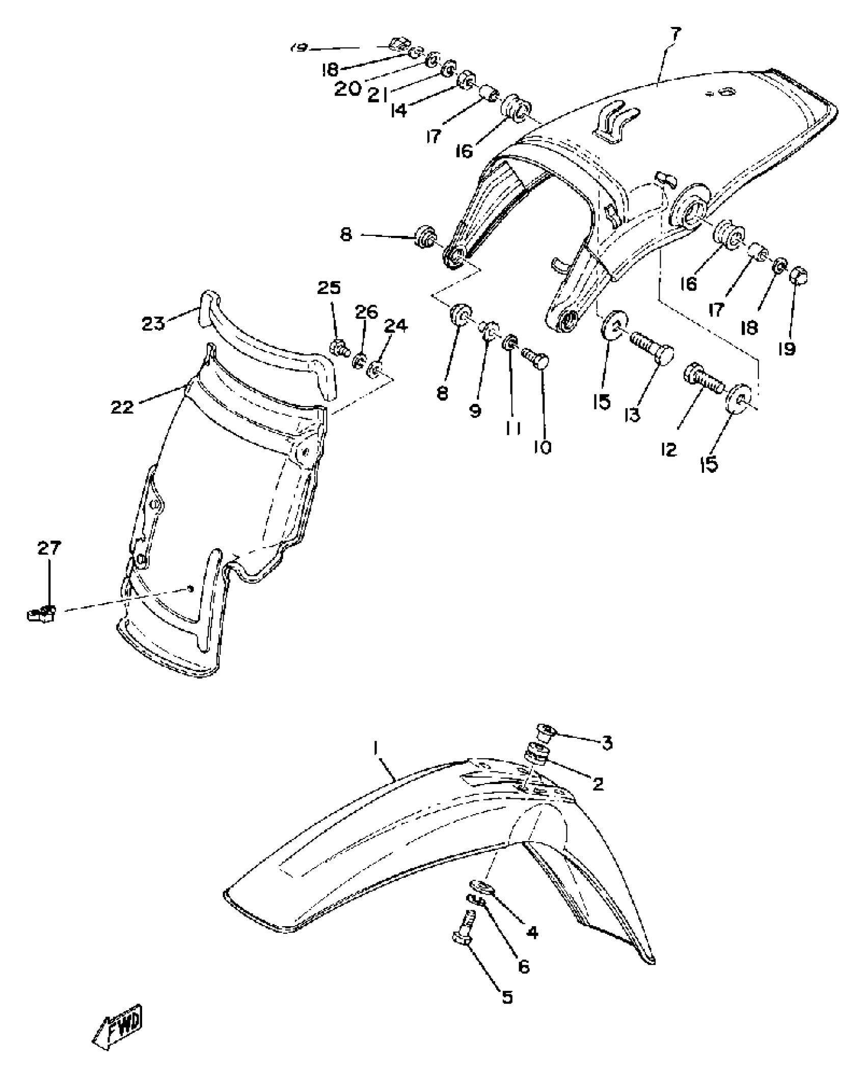 Yamaha XT500H (XT500) 1981 FRONT FENDER REAR FENDER Diagram