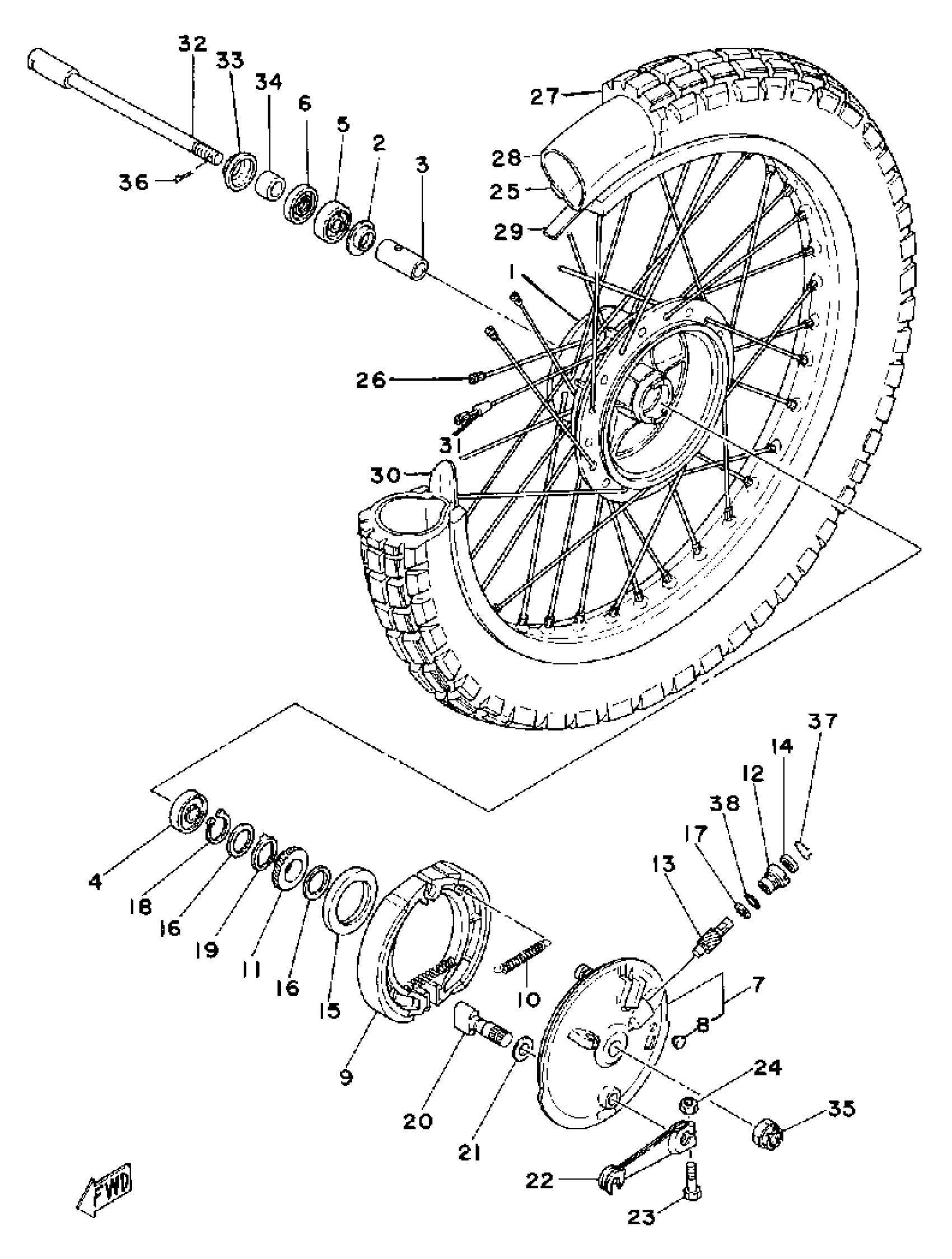 Yamaha XT500H (XT500) 1981 FRONT WHEEL Diagram