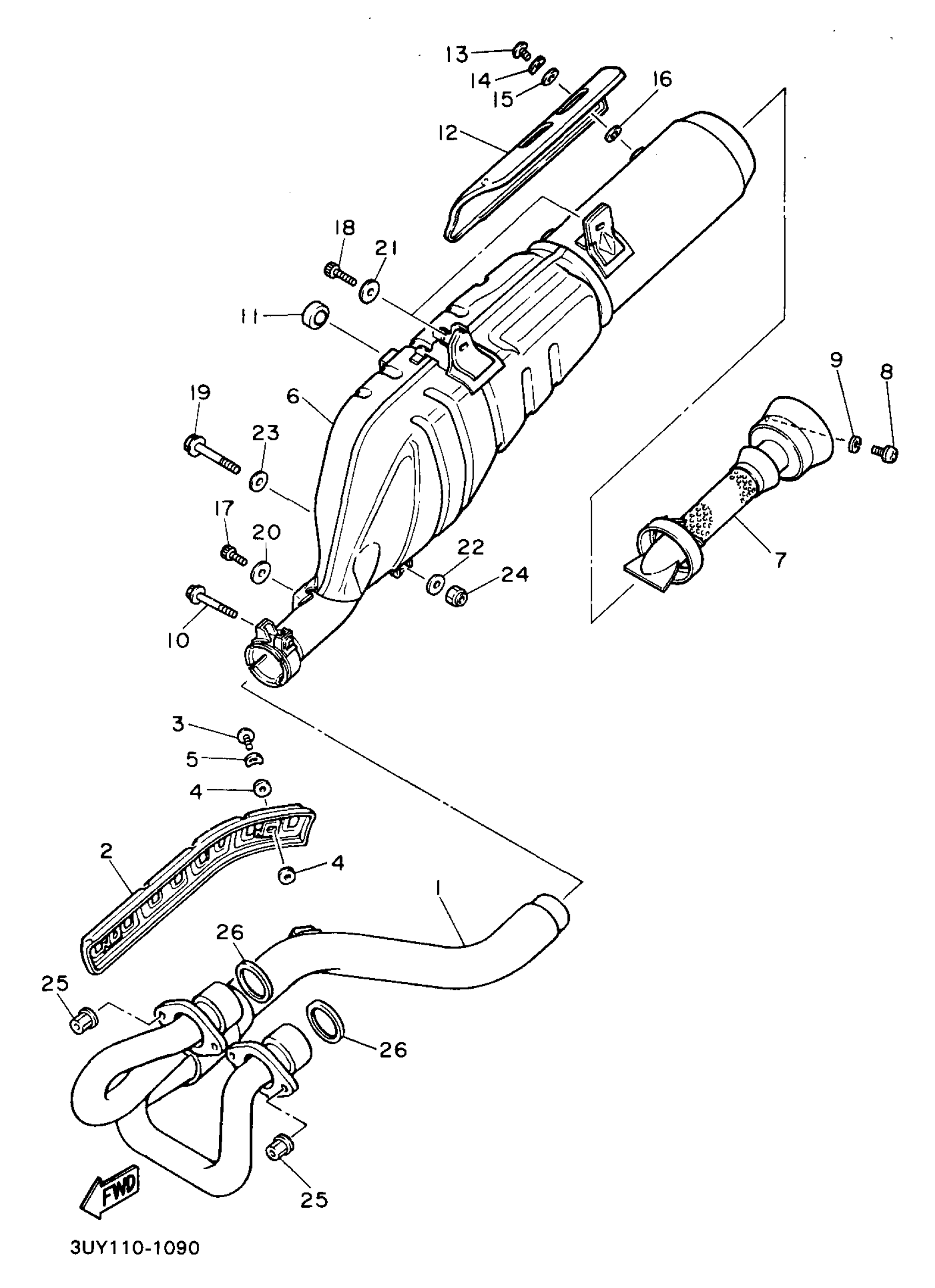 Yamaha XT600EEC (XT600E CA) 3UYA 1993 EXHAUST Diagram