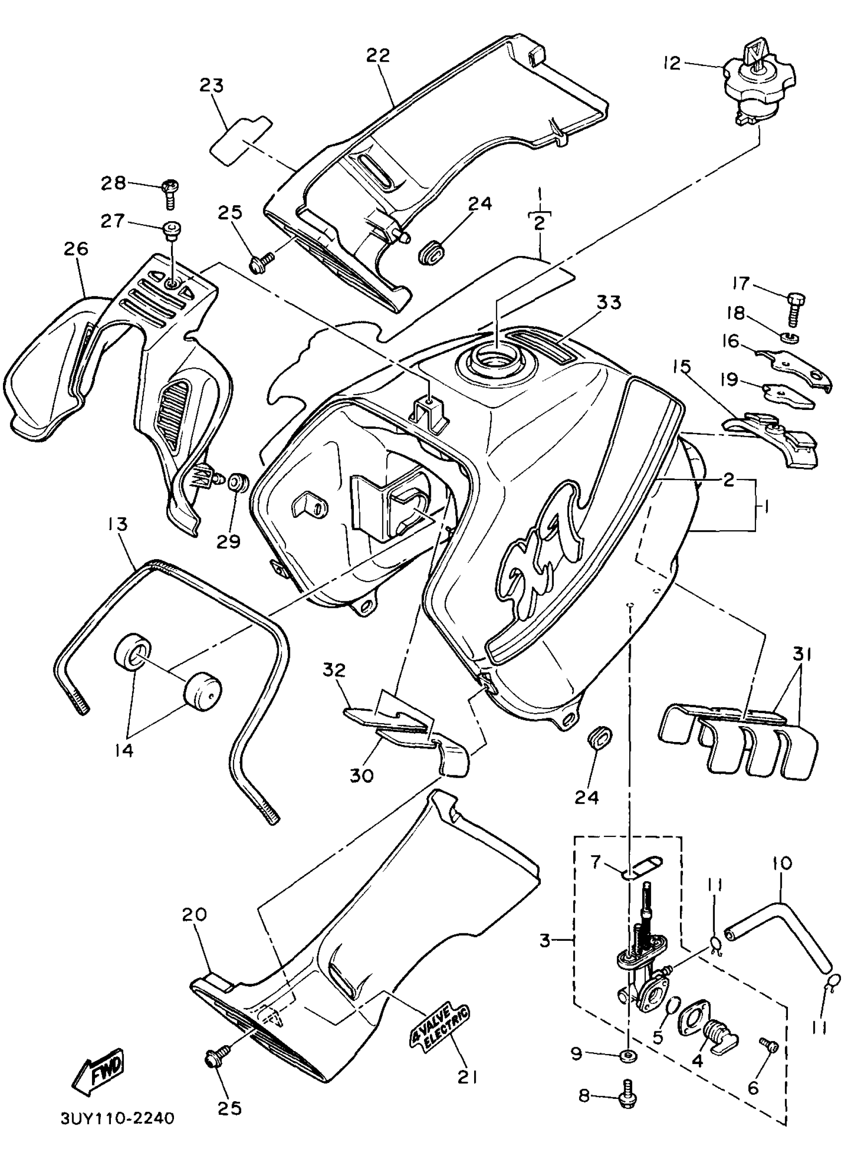 Yamaha XT600EEC (XT600E CA) 3UYA 1993 FUEL TANK Diagram