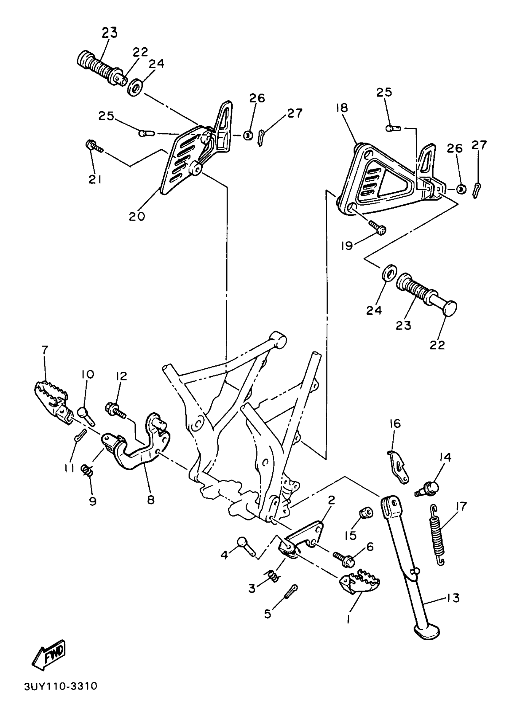 Yamaha XT600EEC (XT600E CA) 3UYA 1993 STAND FOOTREST Diagram