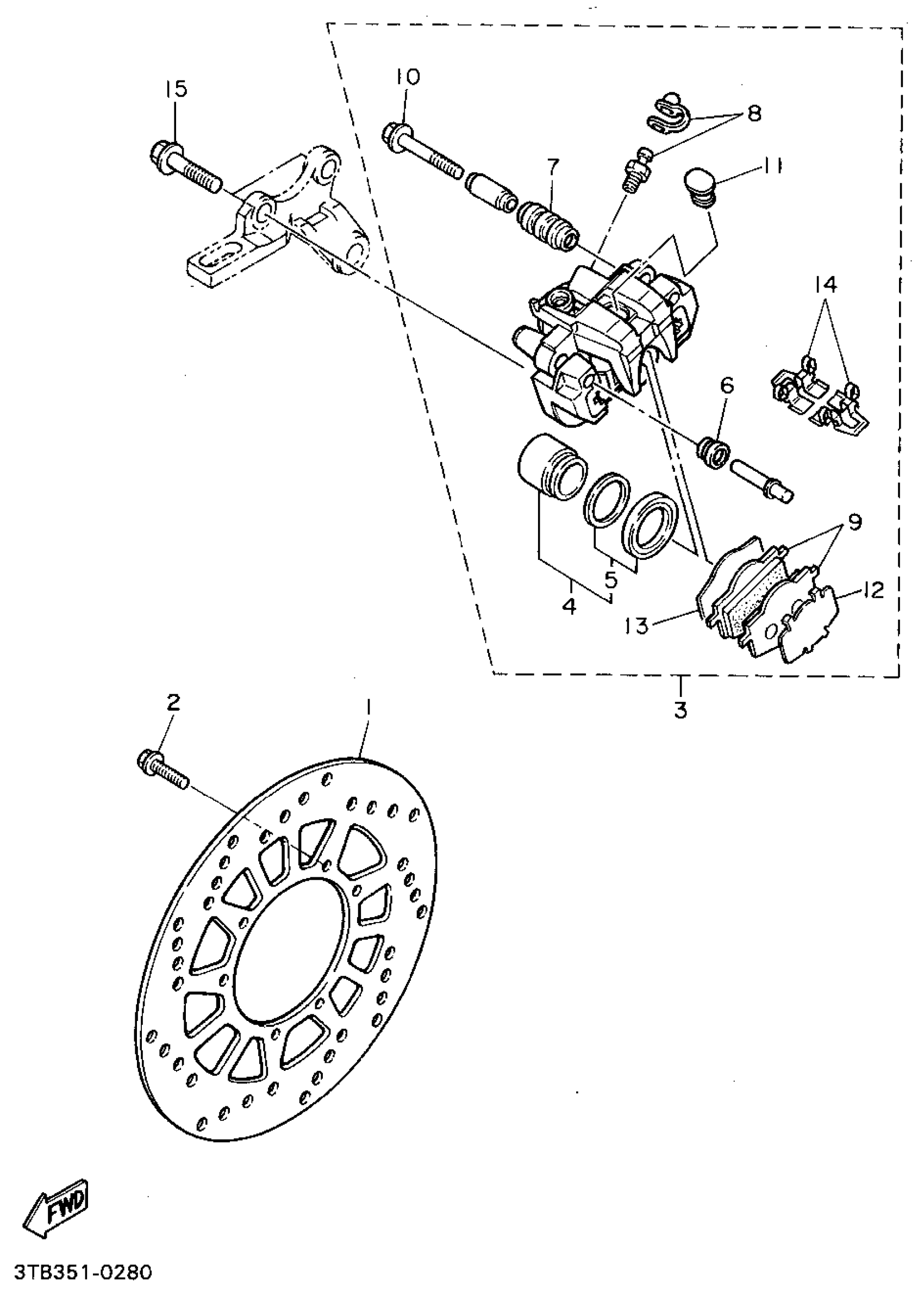 Yamaha XT600EFC (XT600E CA) 1994 REAR BRAKE CALIPER Diagram