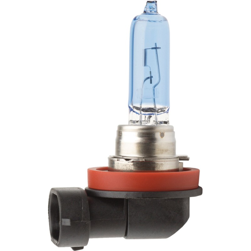 - Has a cool white light output that gives the driver better color recognition on depth perception and better contrast than stock halogen lamps. The blue top coat on this series of bulbs adds a slight blue tint to a lamp with no loss of performance