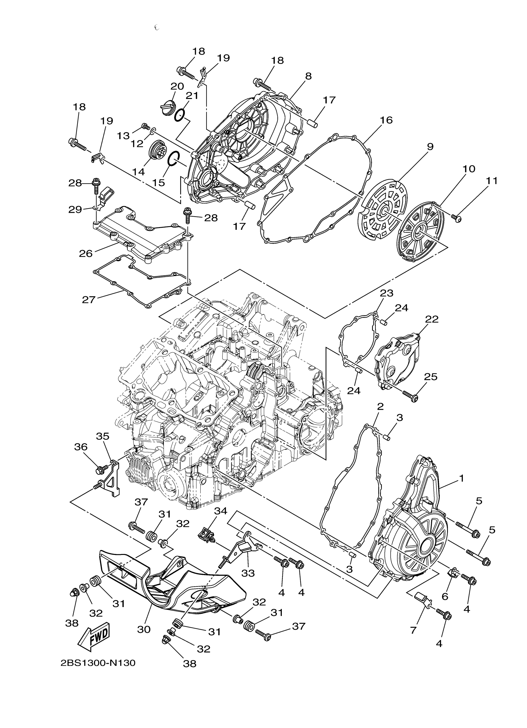 Yamaha XTZ12EFR (SUPER TENERE ES) 2KBG 2015 CRANKCASE COVER 1 Diagram