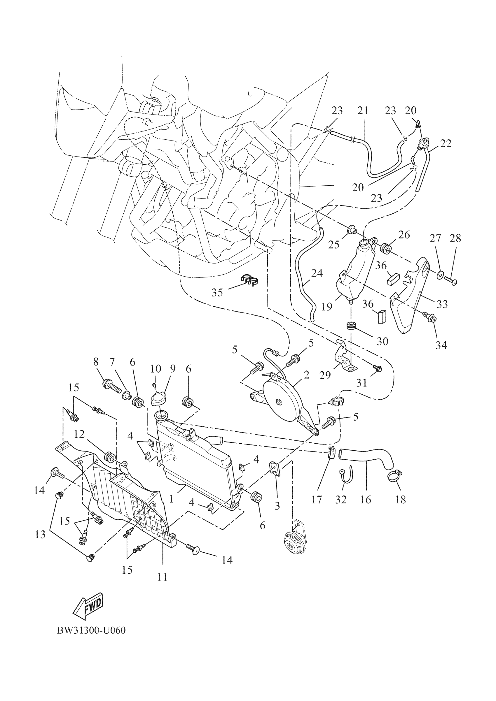 Yamaha XTZ7MW (TENERE 700) BAU11 2021 RADIATOR & HOSE Diagram