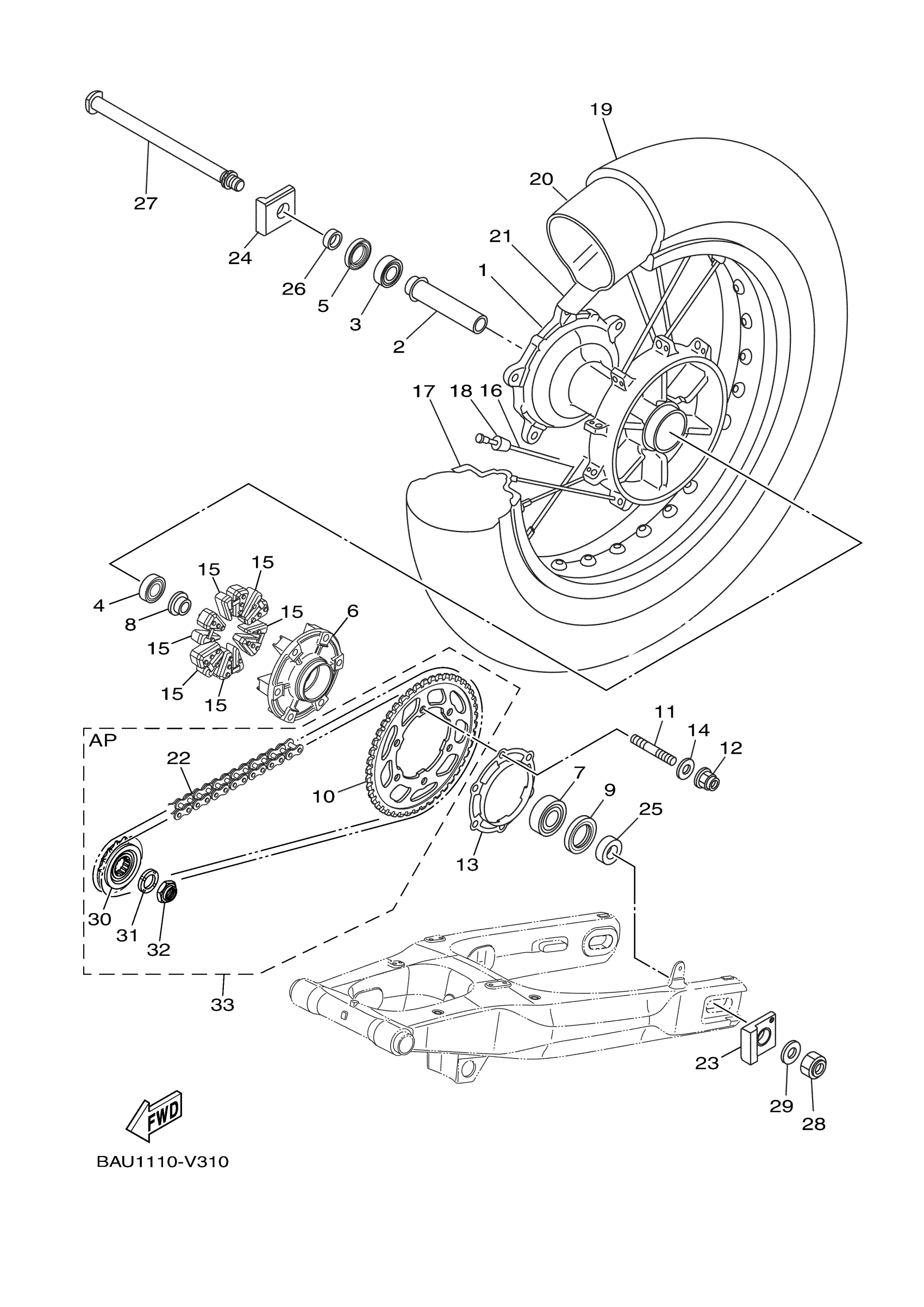 Yamaha XTZ7NL (TENERE 700) BHL1 2022 REAR WHEEL Diagram