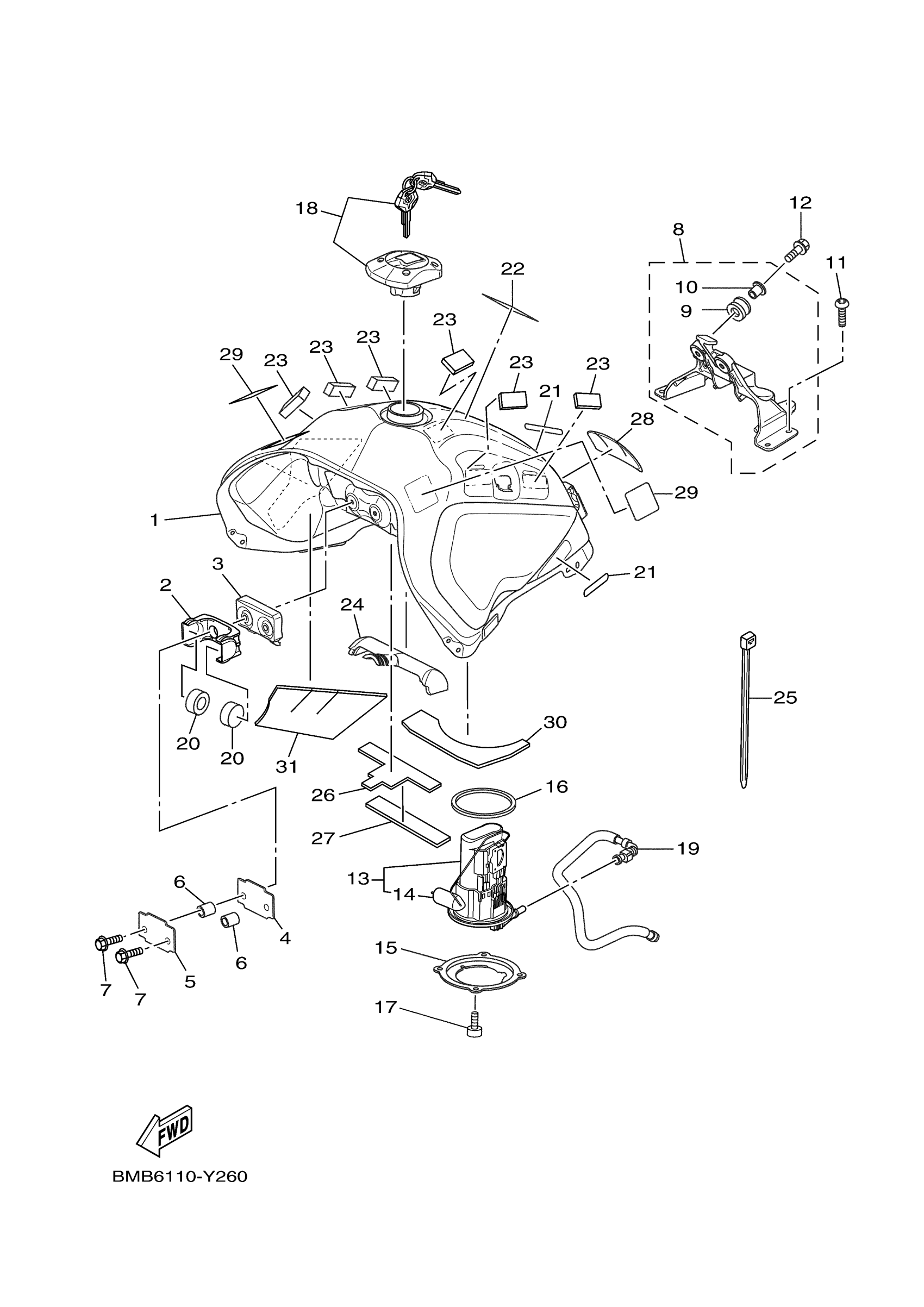Yamaha XTZ7RL (TENERE 700) BVW1 2024 FUEL TANK Diagram