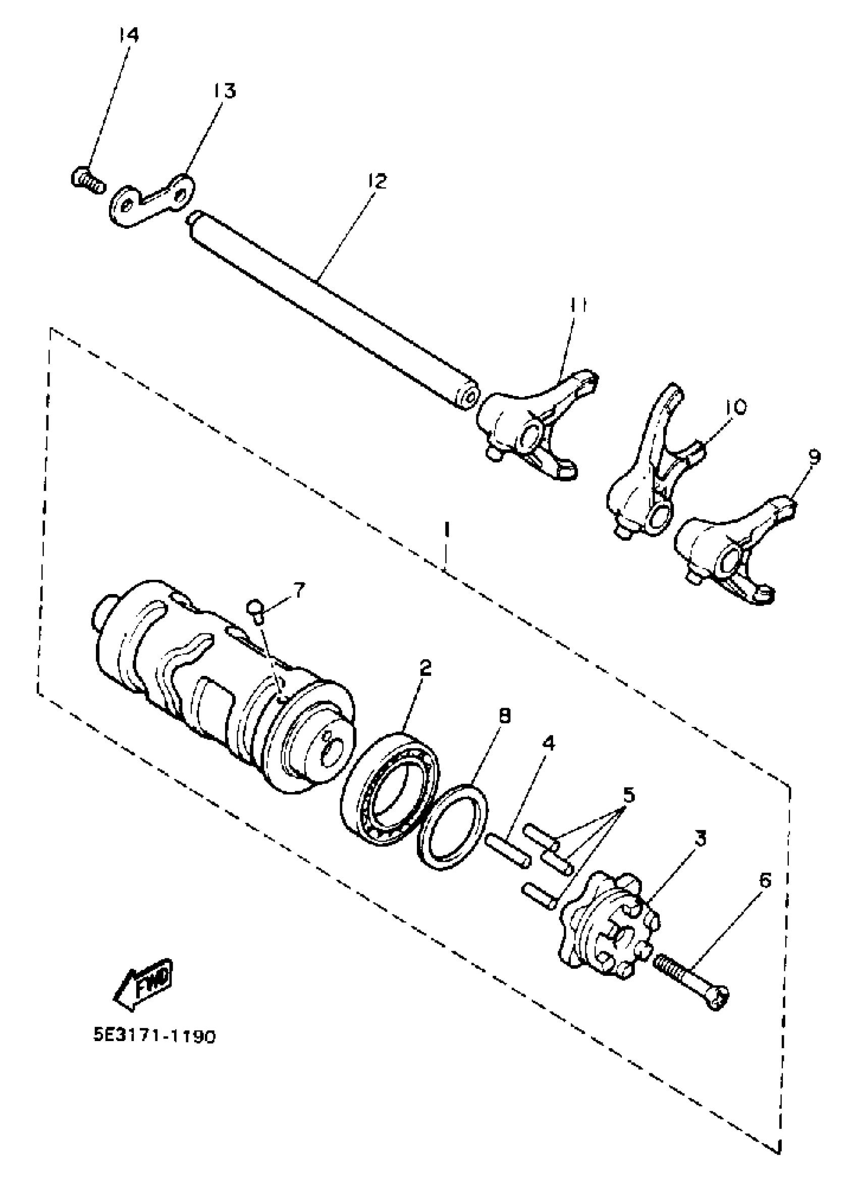 Yamaha XV1100BC (VIRAGO 1100 CA) 1991 SHIFT CAM FORK Diagram