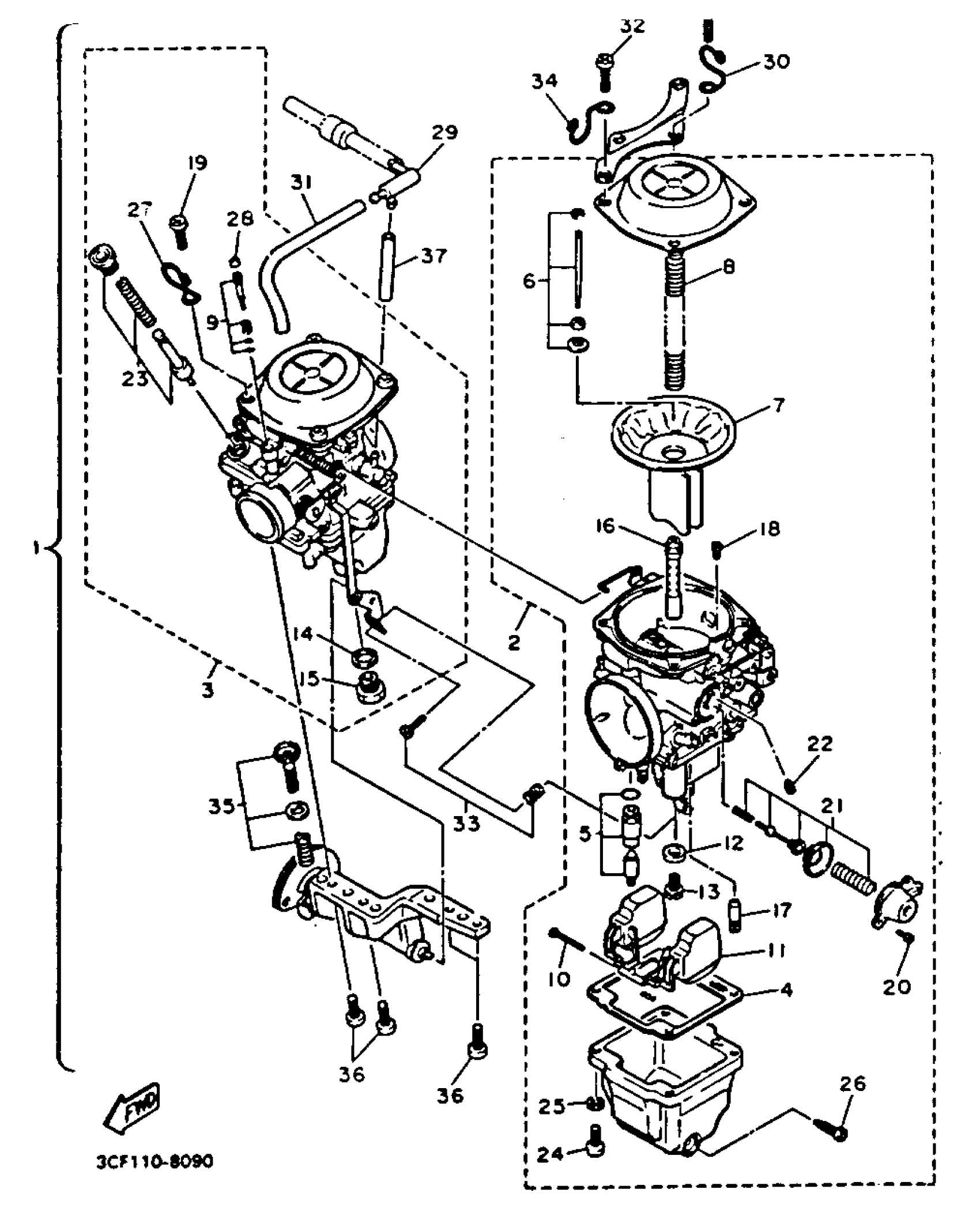 Yamaha XV1100DC (VIRAGO 1100 CA) 1992 CARBURETOR Diagram