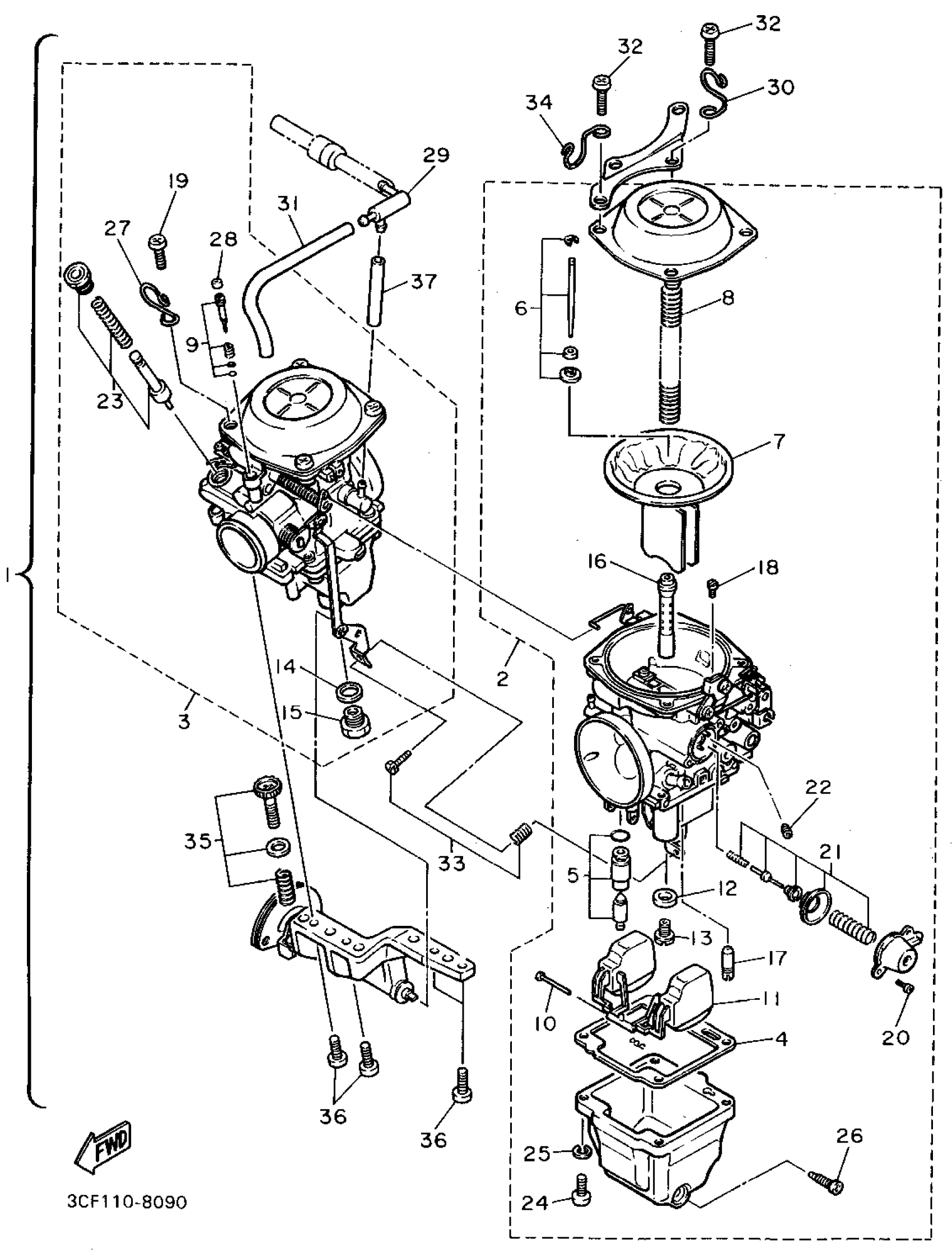 Yamaha XV1100FC (VIRAGO 1100 CA) 1994 CARBURETOR Diagram