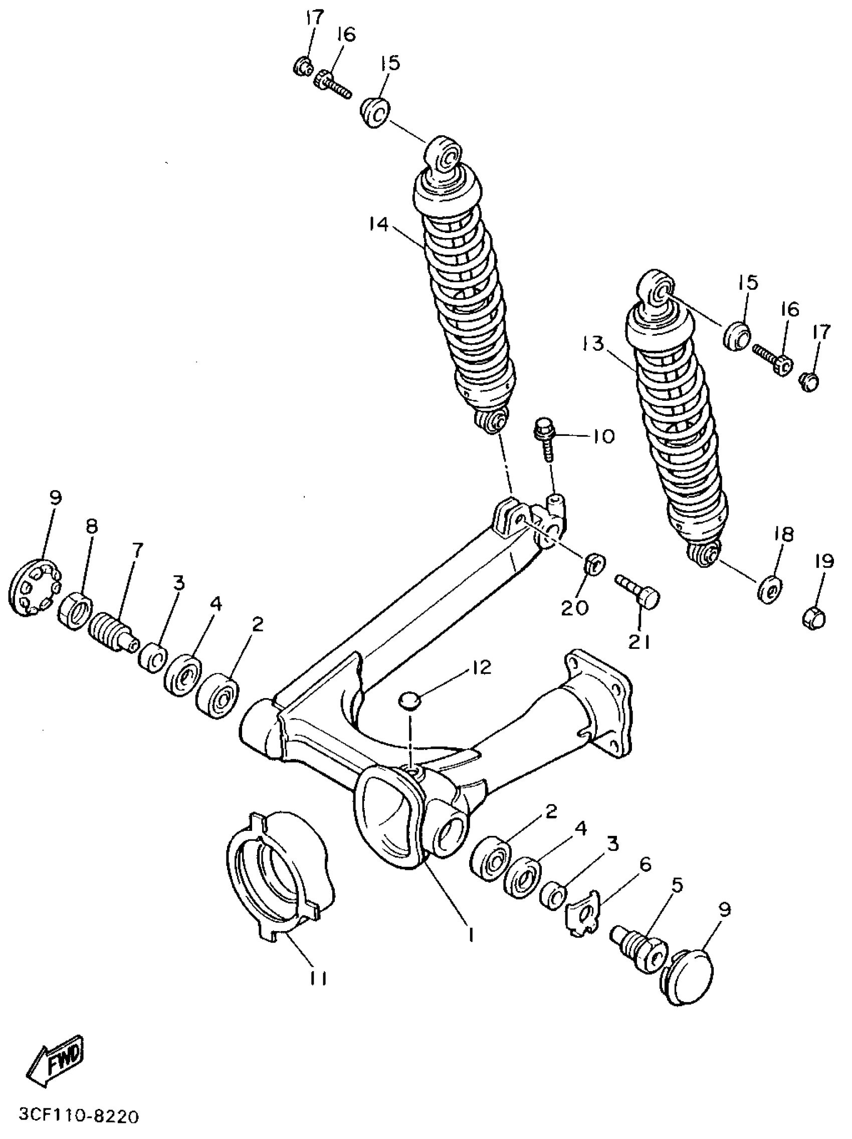 Yamaha XV1100FC (VIRAGO 1100 CA) 1994 REAR ARM SUSPENSION Diagram