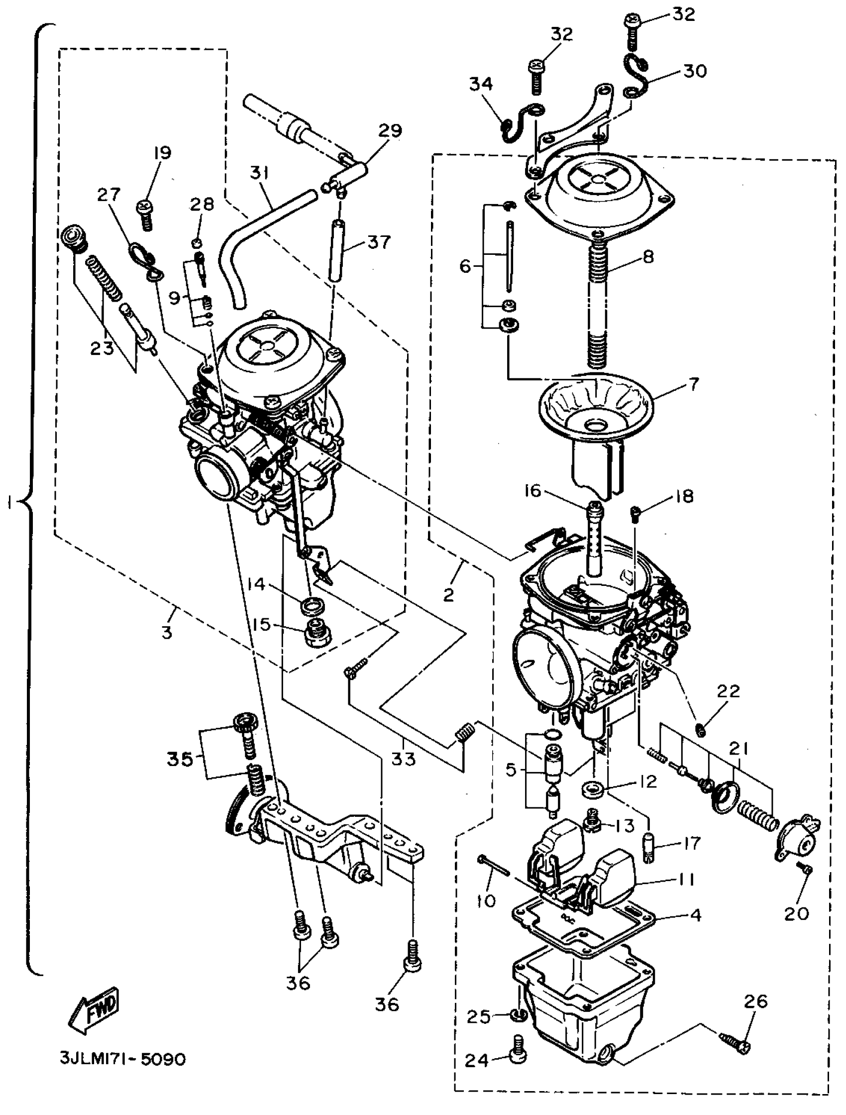 Yamaha XV1100GC (VIRAGO 1100 CA) 1995 CARBURETOR Diagram