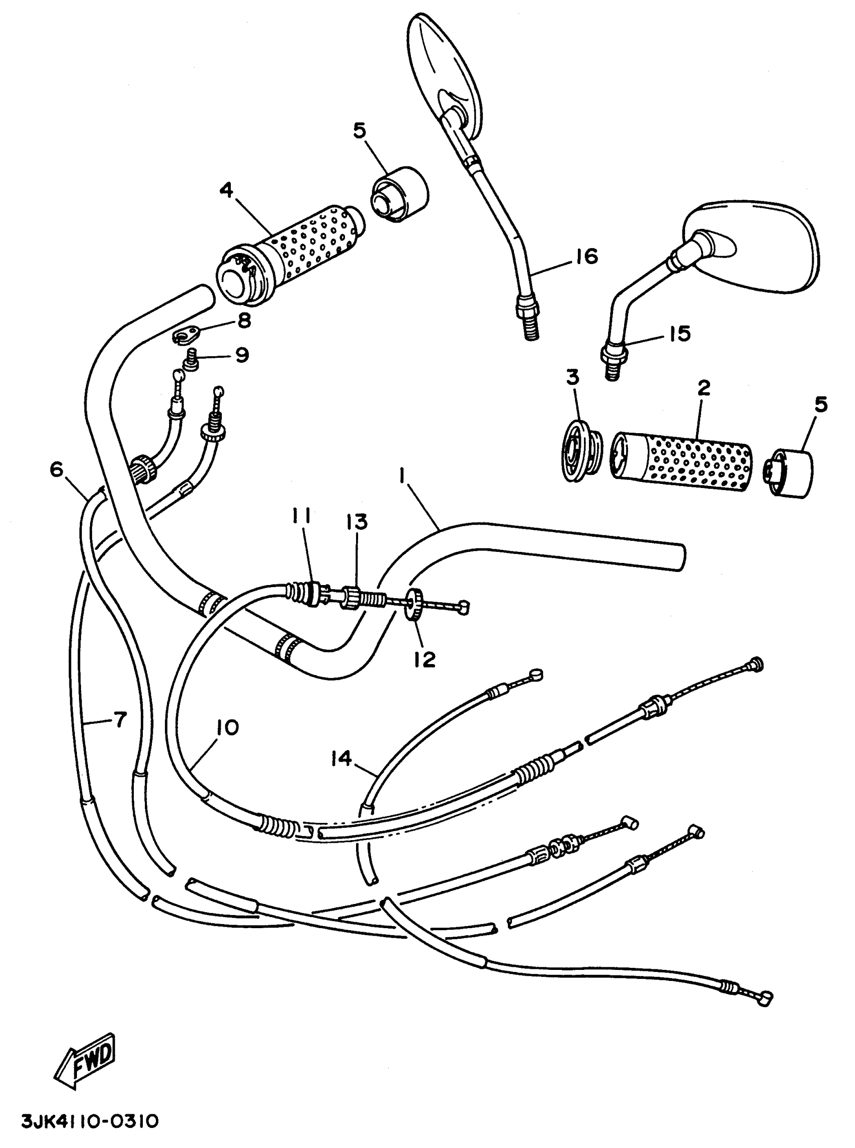 Yamaha XV1100SHC (VIRAGO 1100 SPECIAL CA) BH20741 1996 STEERING HANDLE CABLE Diagram