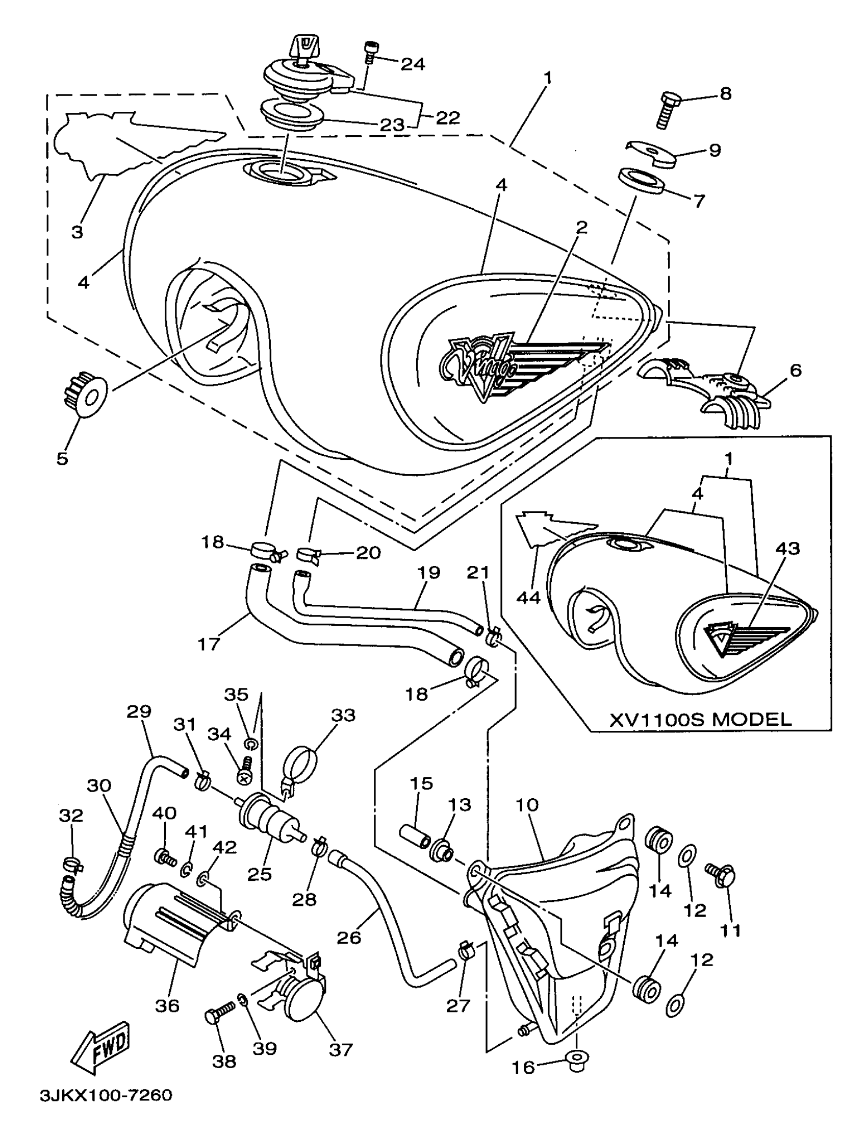 Yamaha XV1100SJC (VIRAGO 1100 SPECIAL CA) 1997 FUEL TANK NON CALIFORNIA Diagram