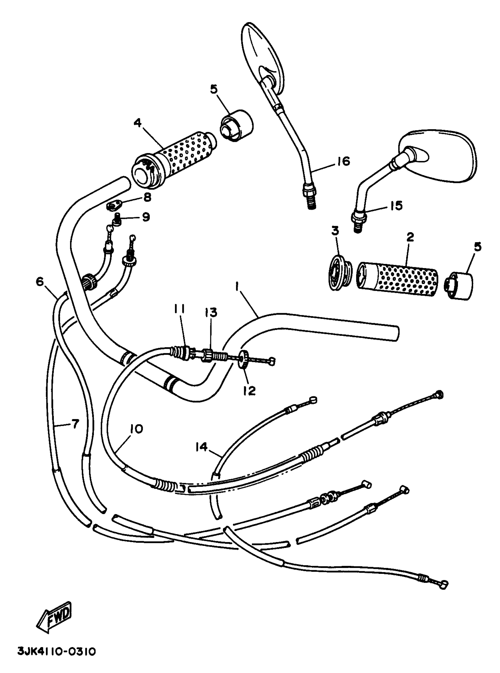 Yamaha XV1100SJC (VIRAGO 1100 SPECIAL CA) 1997 STEERING HANDLE CABLE Diagram