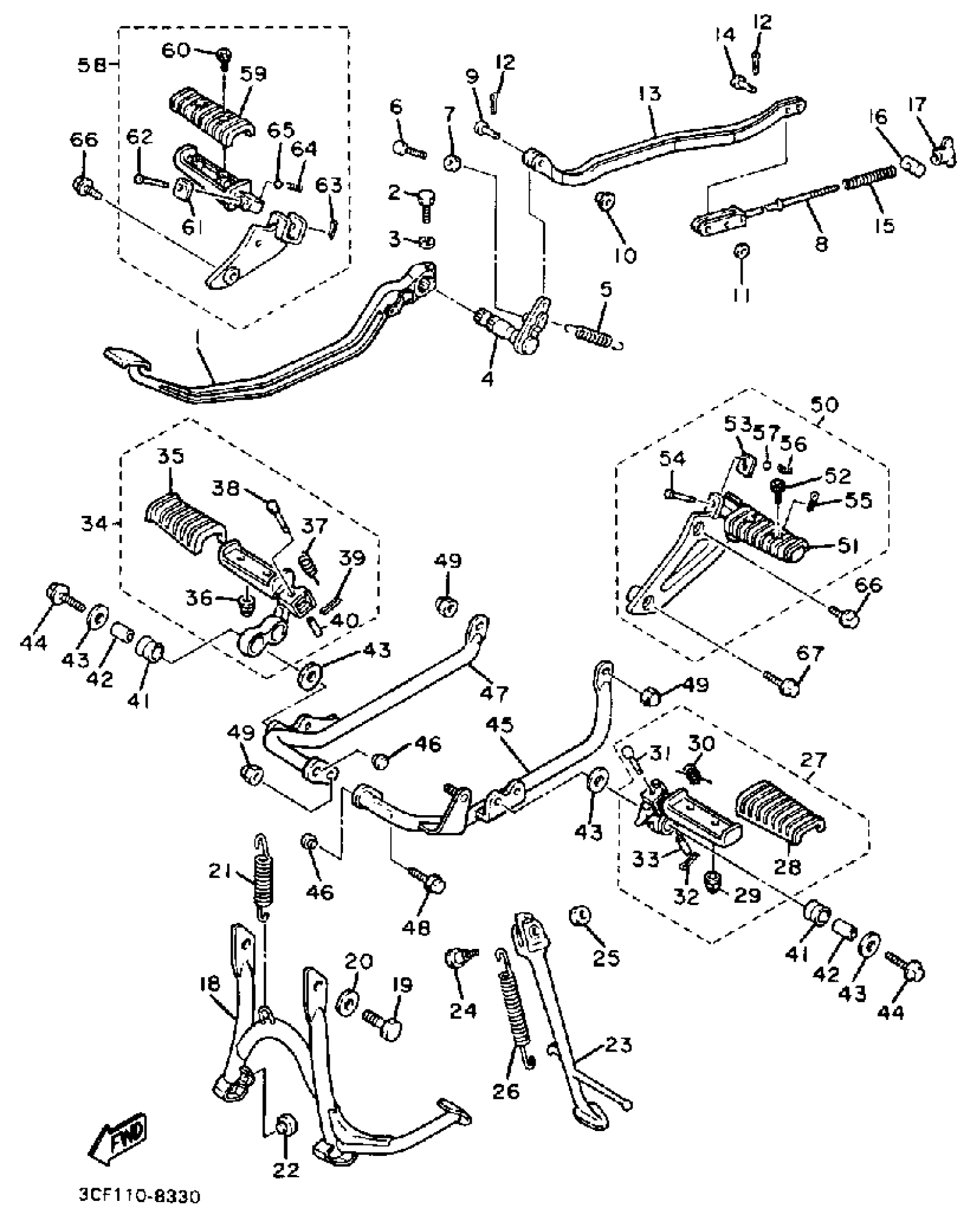 Yamaha XV1100UC (VIRAGO 1100 CA) 1988 STAND FOOTREST Diagram