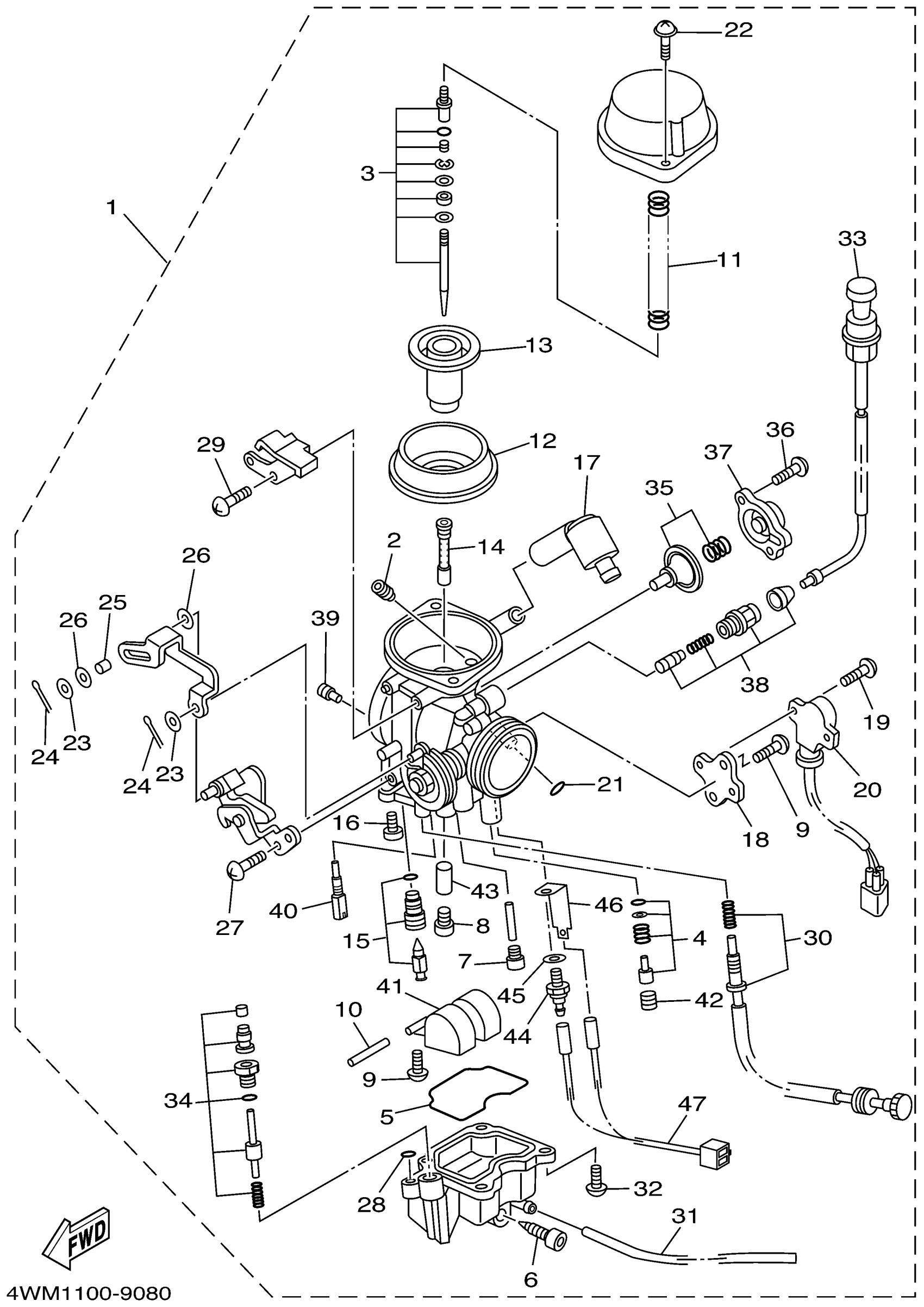 Yamaha XV1600ALC (ROAD STAR CA) 4WM2 1999 CARBURETOR Diagram