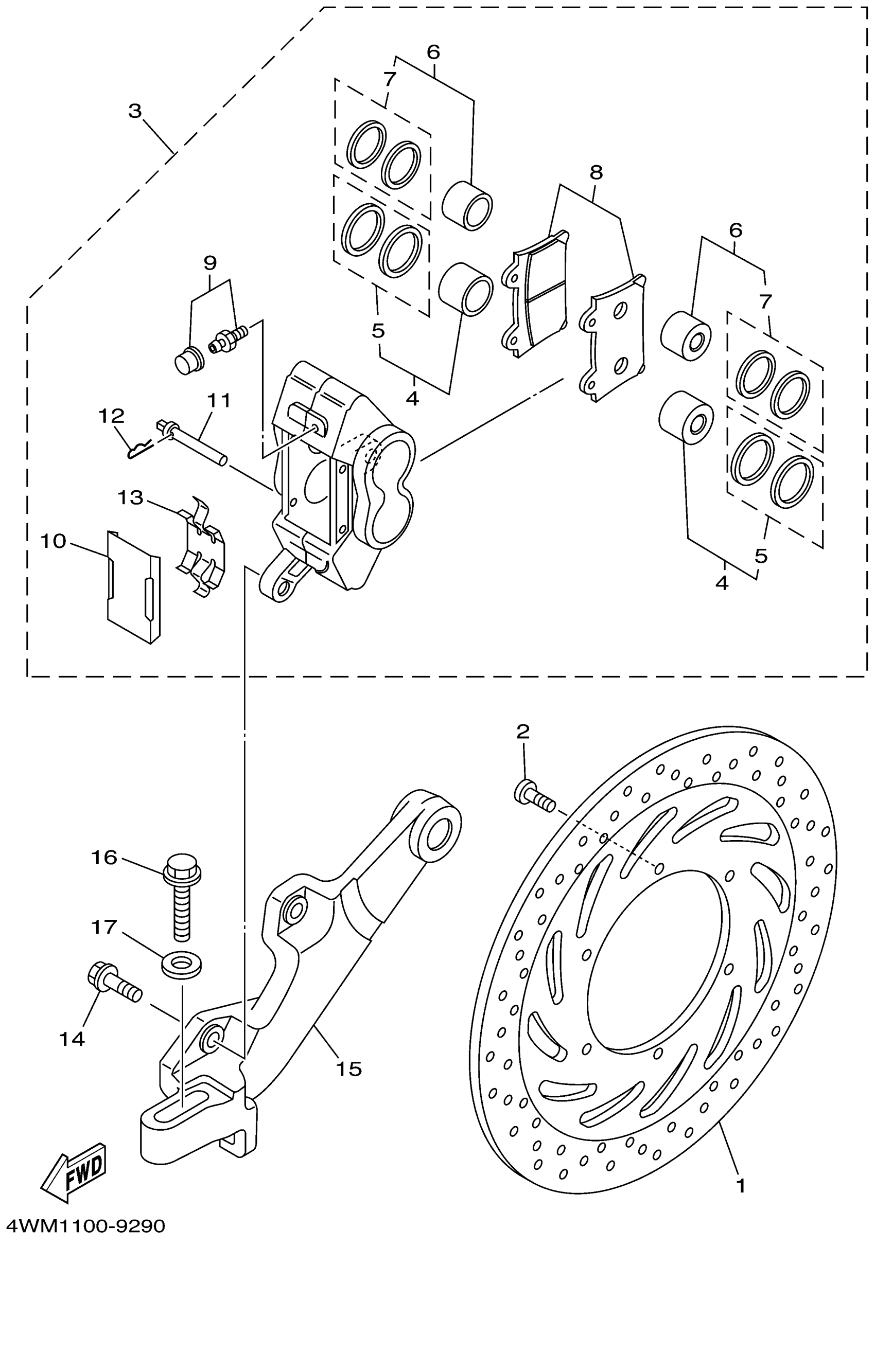 Yamaha XV1600ALC (ROAD STAR CA) 4WM2 1999 REAR BRAKE CALIPER Diagram