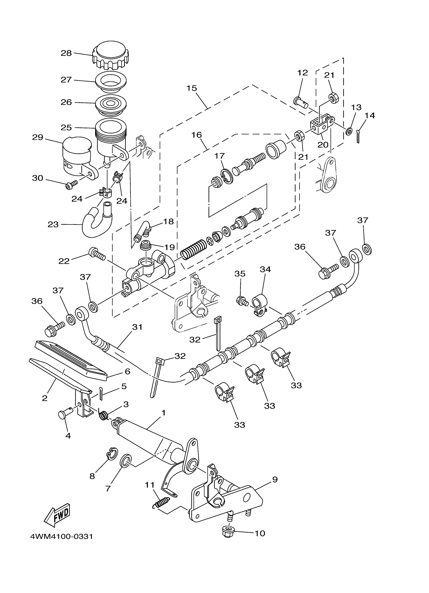 Yamaha XV1600ALERC (ROAD STAR LIMITED EDITION CA) 4WML 2003 REAR MASTER CYLINDER Diagram
