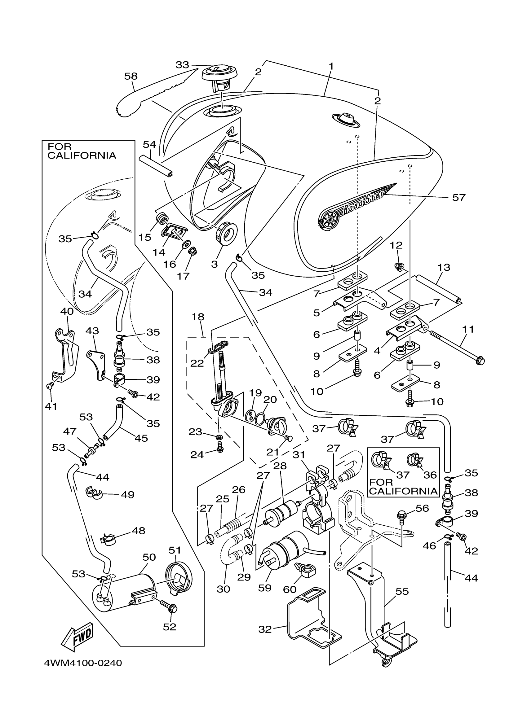 Yamaha XV1600AMC (ROAD STAR CA) 4WM5 2000 FUEL TANK Diagram